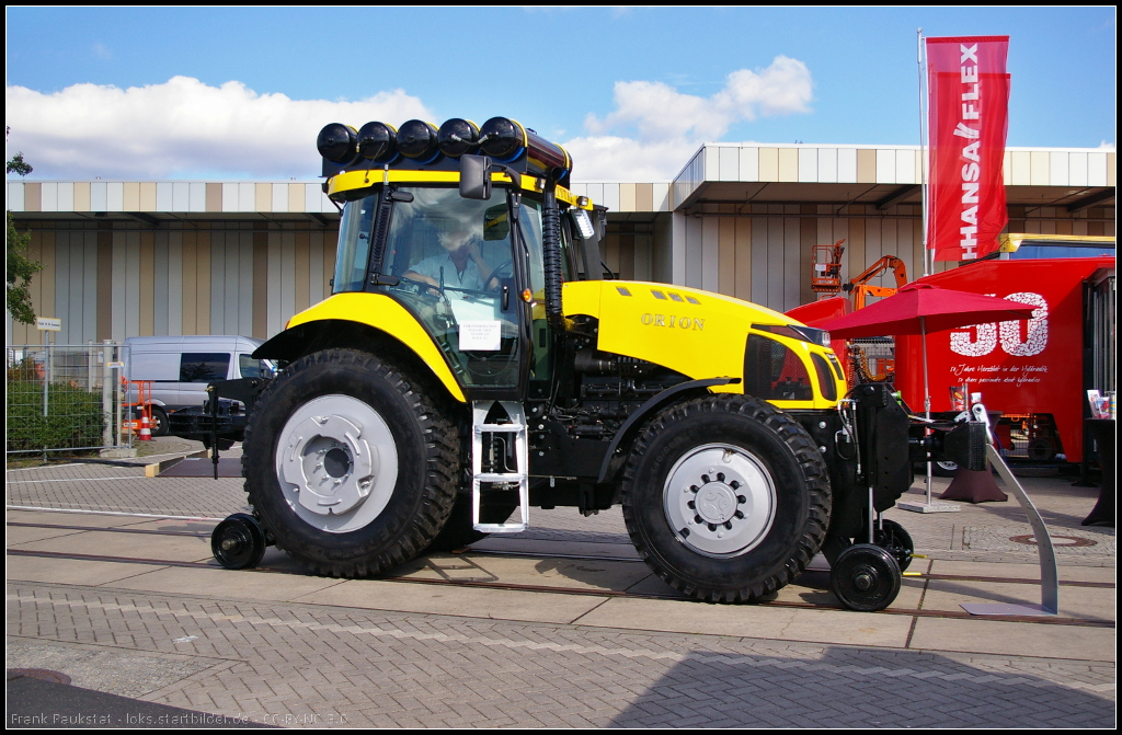 InnoTrans 2016 in Berlin: Bei dem ORION 9C von Crystal Traktor aus Polen handelt es sich um einen Zweiwege-Rangierfahrzeug mit hoher Funktionalität bei geringen betrieblichen Kosten. Der 6-Zylinder-Common Rail-Motor leistet 116 kW bei einer Geschwindigkeit von min. 0,3 km/h bis max 40 km/h. Ausgerüstet ist der Traktor mit SA3- und Scharfenberg-Kupplung und einer Druckluftbremse die auch auf UIC-Wagen wirkt.