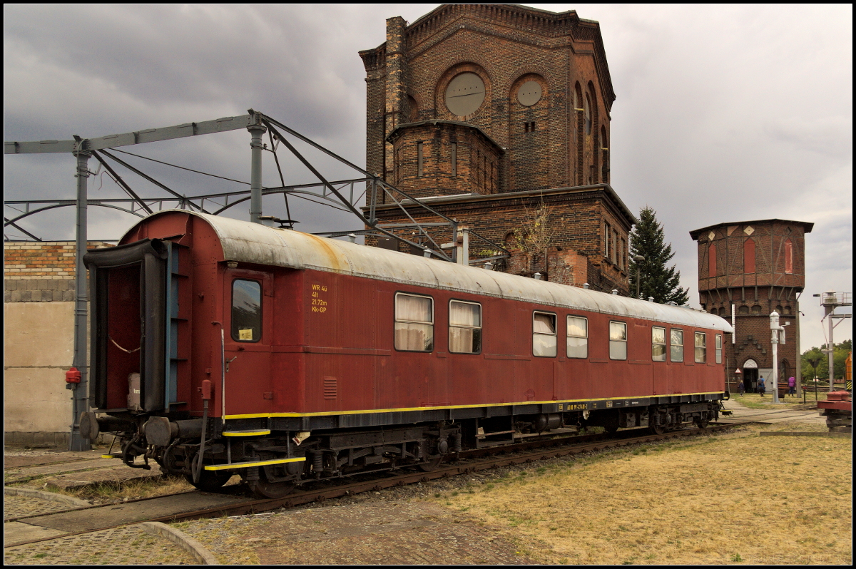 Im frischen Glanz zeigt sich der Salon-Autotransportwagen 89-43 300-2 des Regierungszug der DDR. Der Wagen wurde ca 1930 bei der Gothaer Waggonfabrik als Pw4ü-30 gebaut und an die Deutsche Reichsbahn ausgeliefert. Inzwischen gehört der Wagen zum Bestand des Historischen Lokschuppen Wittenberge und stand am 25.08.2018n mit der MEG 103 während des Brandenburg-Tag 2018 auf dem ehemaligen Anschlussgleis zum Bahnhof Wittenberge (DR 60 50 89-43 300-2 Salon-Autotransportwagen).