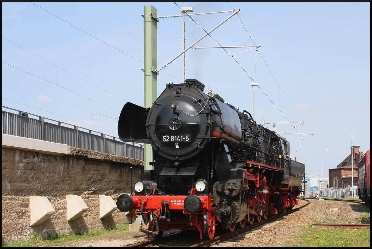 52 8080 der OSEF fährt auf die Drehscheibe um für die anwesenden Besucher gedreht zu werden (gesehen 3. Dresdner Dampfloktreffen Dresden-Altstadt 02.04.2011)