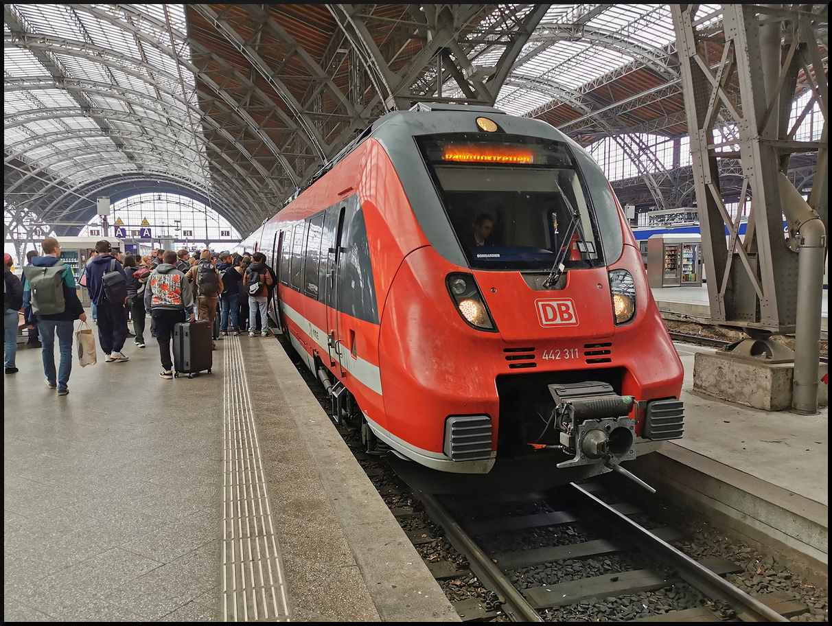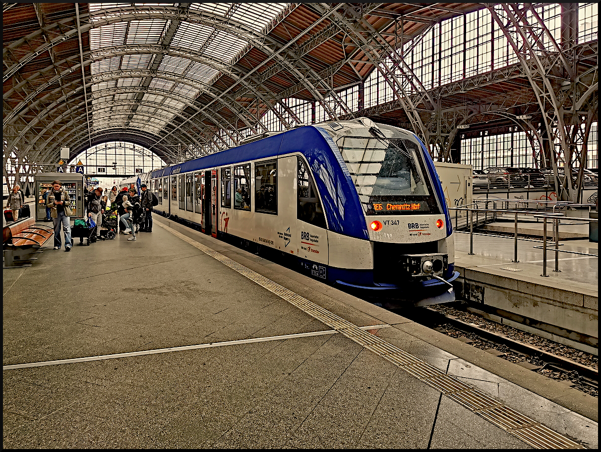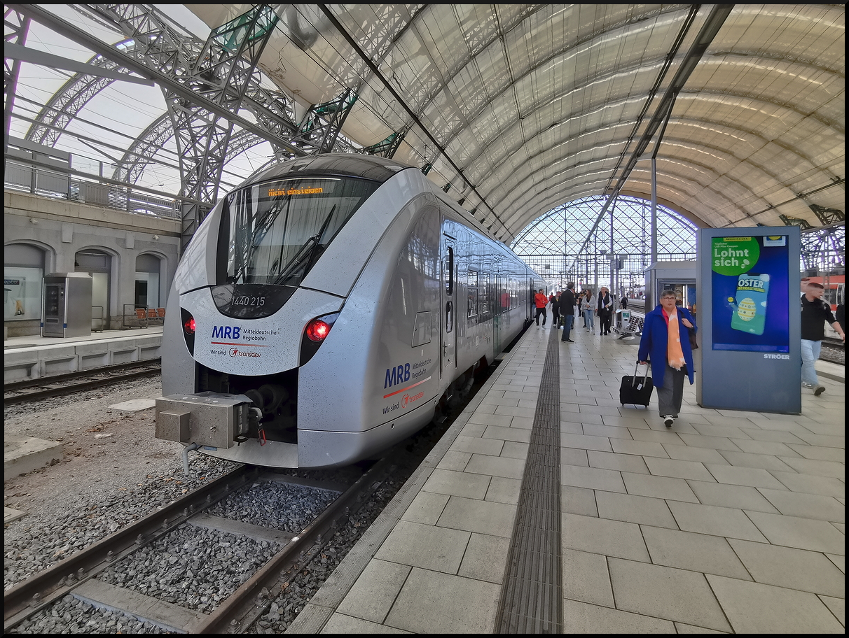 Transdev Regio Ost VT 0004-T2 / 643 611 hatte sich den Talent von der OLA seit Ende 2020 ausgeliehen und setzte ihn am 12.04.2025 als RB110 nach Döbeln Hbf ein. Hier steht am Morgen in Leipzig Hbf und wartet auf Fahrgäste und die Abfahrt (angeschriebene NVR-Nummer: 9580 0 643 611-6 D-TDRO)