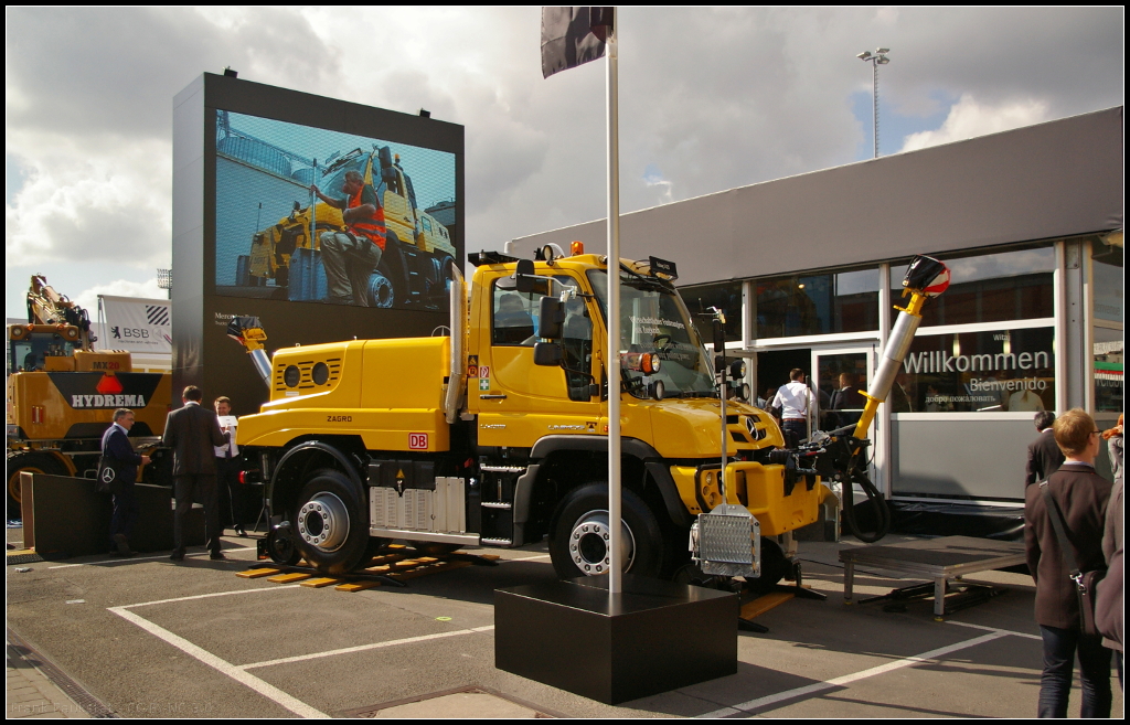 InnoTrans 2016 in Berlin: Markante Seitenansicht des neuen Unimog U 423 von Mercedes Benz, hier als Rangierfahrzeug von der Firma Zagro ausgestellt.