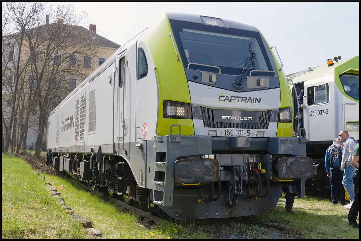 ITL 250 007-2 ist die zweite Gastlok des Unternehmens, das sich auf dem Gelände an der Schiebebühne am 12.04.2025 während des 17. Dresdner Dampfloktreffens präsentierte. Auch hier konnte der Führerstand besichtigt und einmal die Motoren gestartet werden. Links lugt die erste Gastlok von ČD Nostalgie hervor (92 80 1250 007-2 D-ITL)<br><br>
