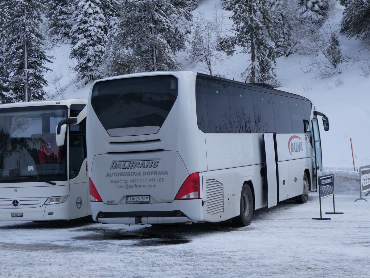 (270'080) - Aus der Slowakei: DALITRANS, Vel'ké Bierovce - AA-192KY - Neoplan am 21. Dezember 2024 in Col du Pillon, Glacier 3000
