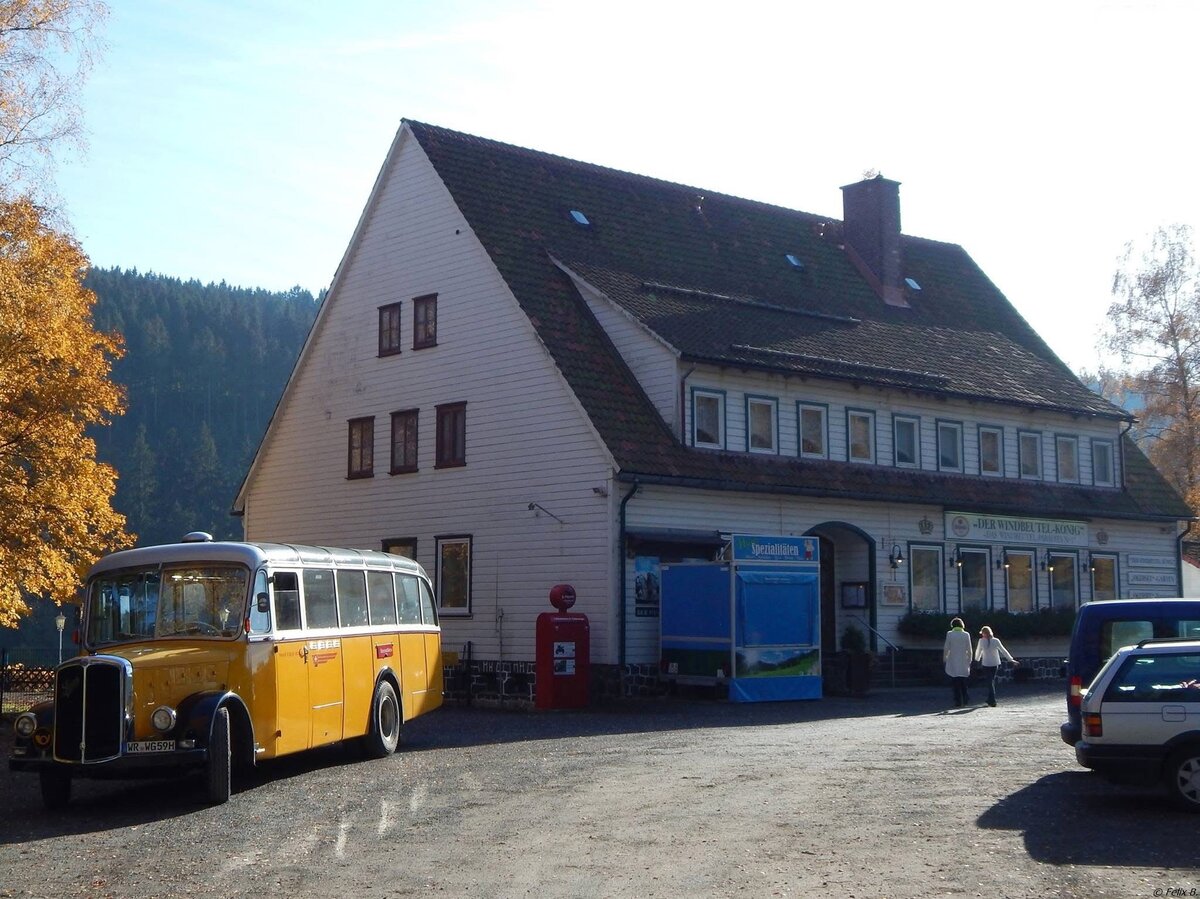 Der Fahrerarbeitsplatz eines Saurer von Wernigeröder Schloßbahn aus Deutschland an der Okertalsperre.