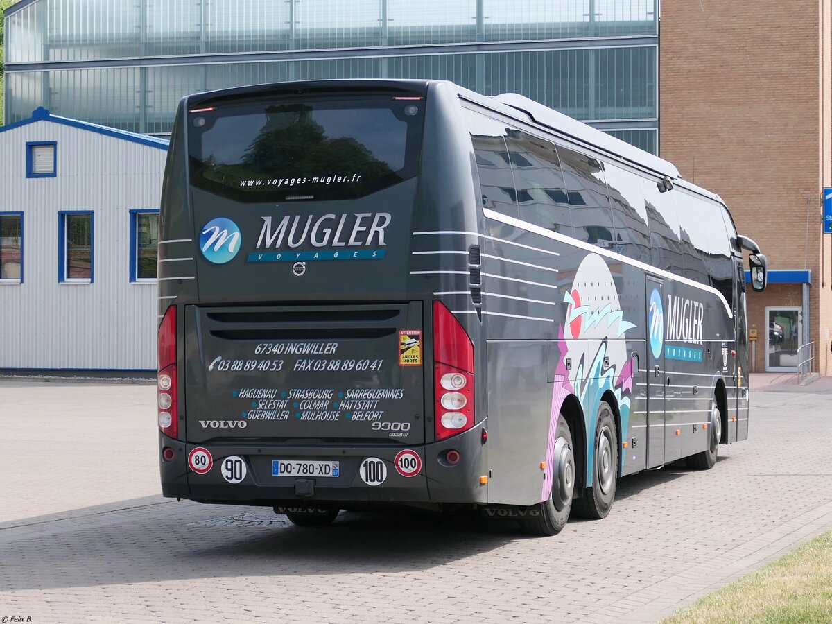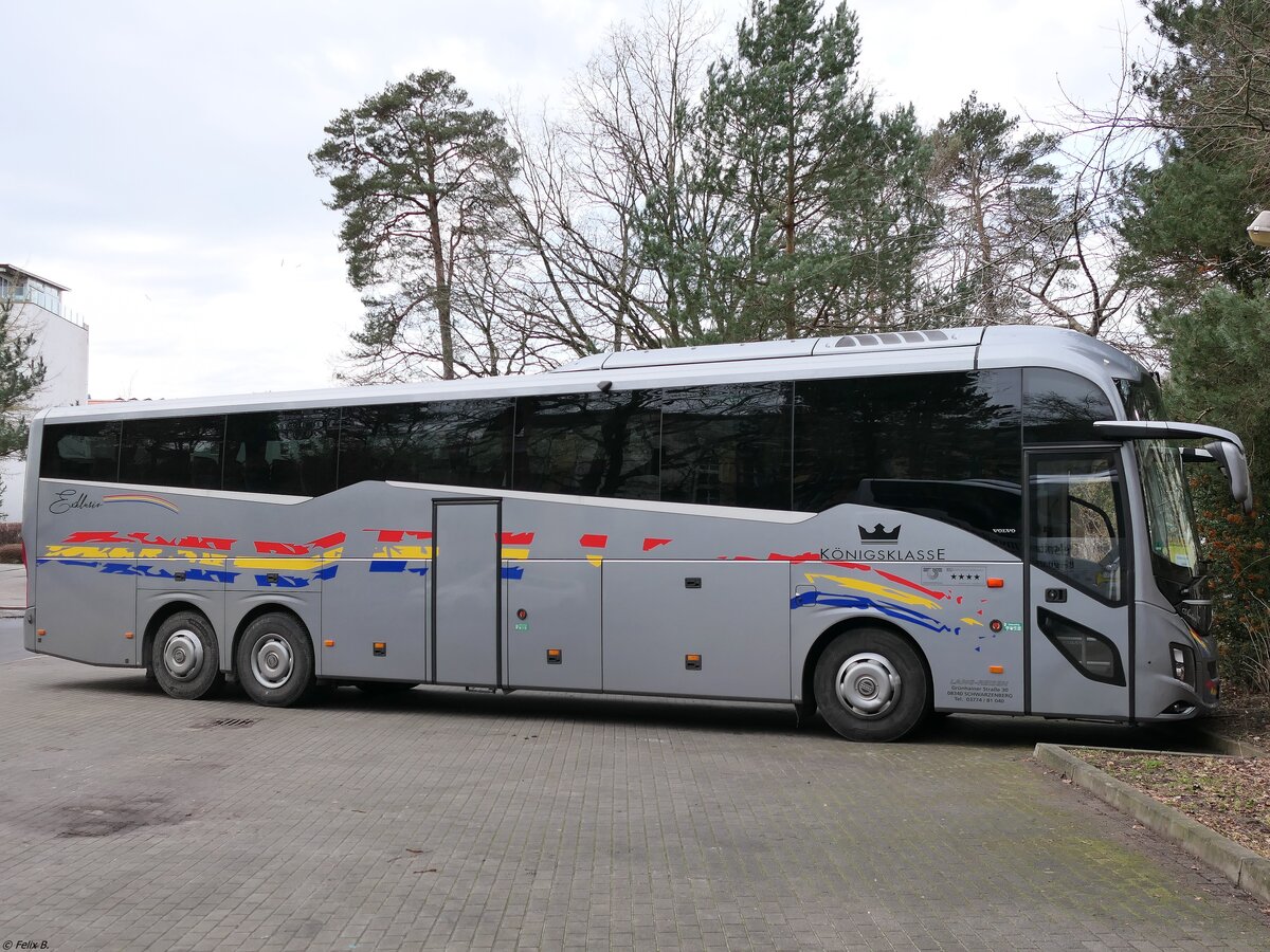 Volvo 9900 von Blåklintsbuss aus Schweden mit Anhänger in Burg Stargard.