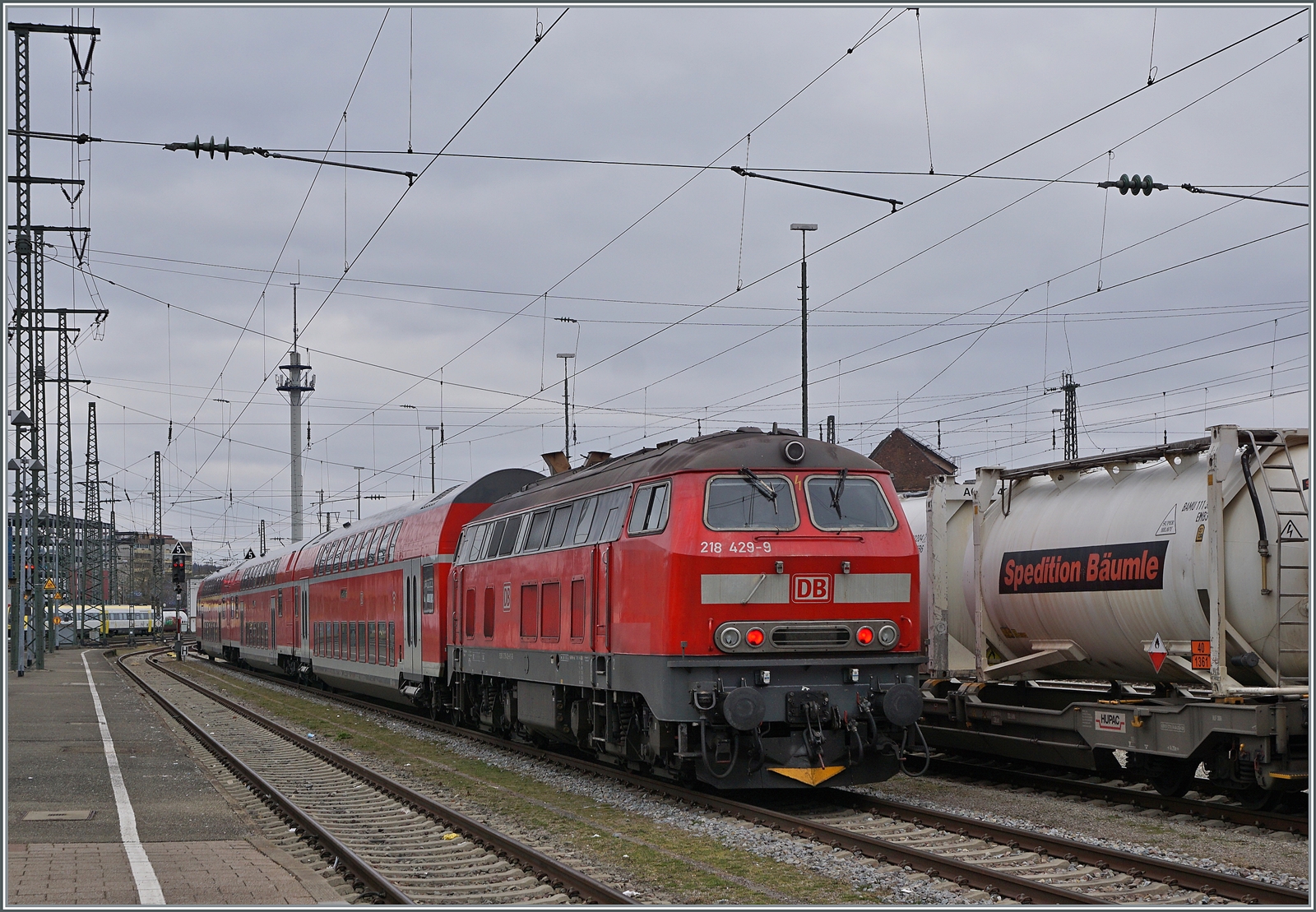 Purperrot mit DB 90er Kecks: 218 387 steht am 26 Mai 2007 ins Bahnwelt Darmstadt-Kranichstein.