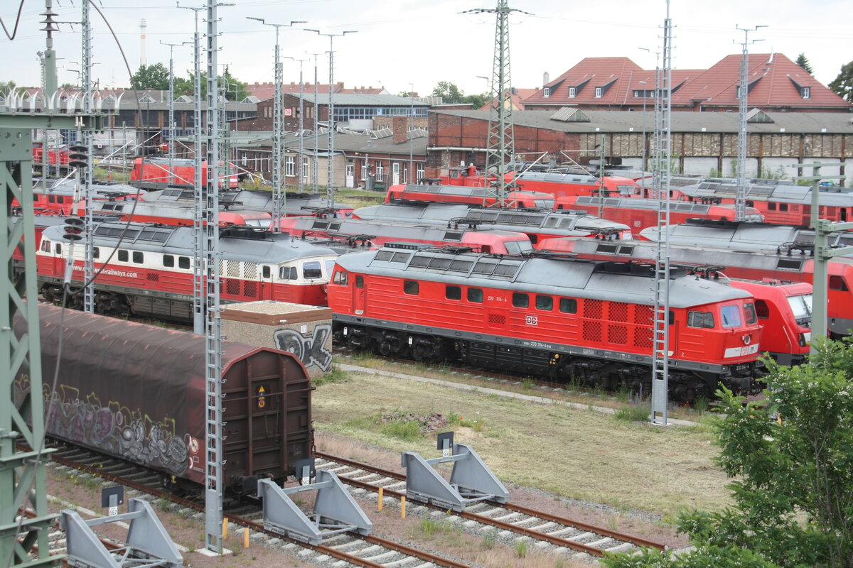 233 314 und 232 484 in der Abstellung am Bw Halle G am 13.6.21