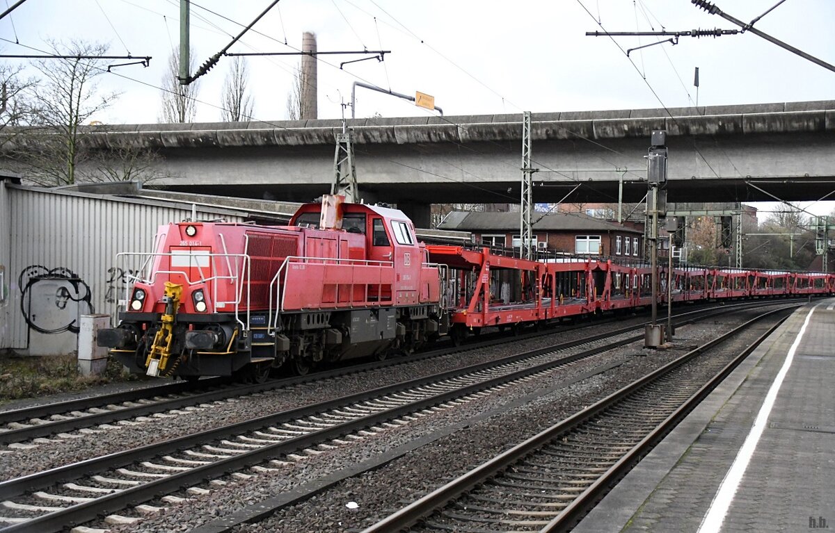 265 014-1 fuhr mit einen leeren autozug durch hh-harburg,10.02.22