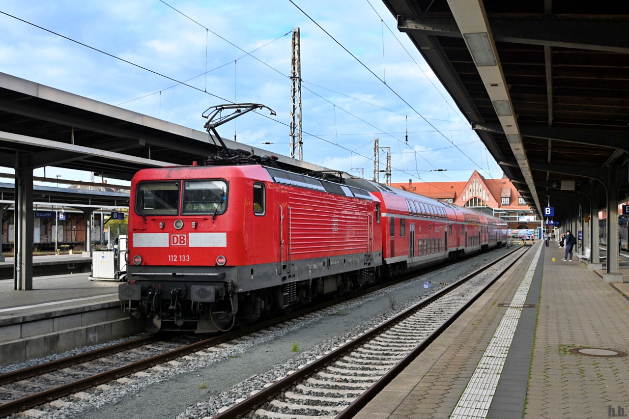 DB Söldner 112 139 treft am sonnigen 21 September 2022 mit N-Wagen in Hannover Hbf ein.