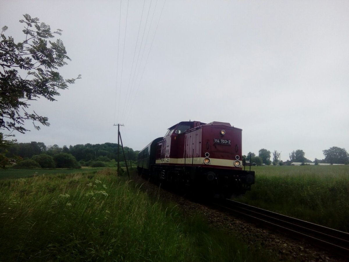 114 703 mit 86 1333 aus Richtung Lauterbach Mole kommend mit ziel Bergen auf Rügen kurz hinter Lauterbach (Rügen) am 27.5.18