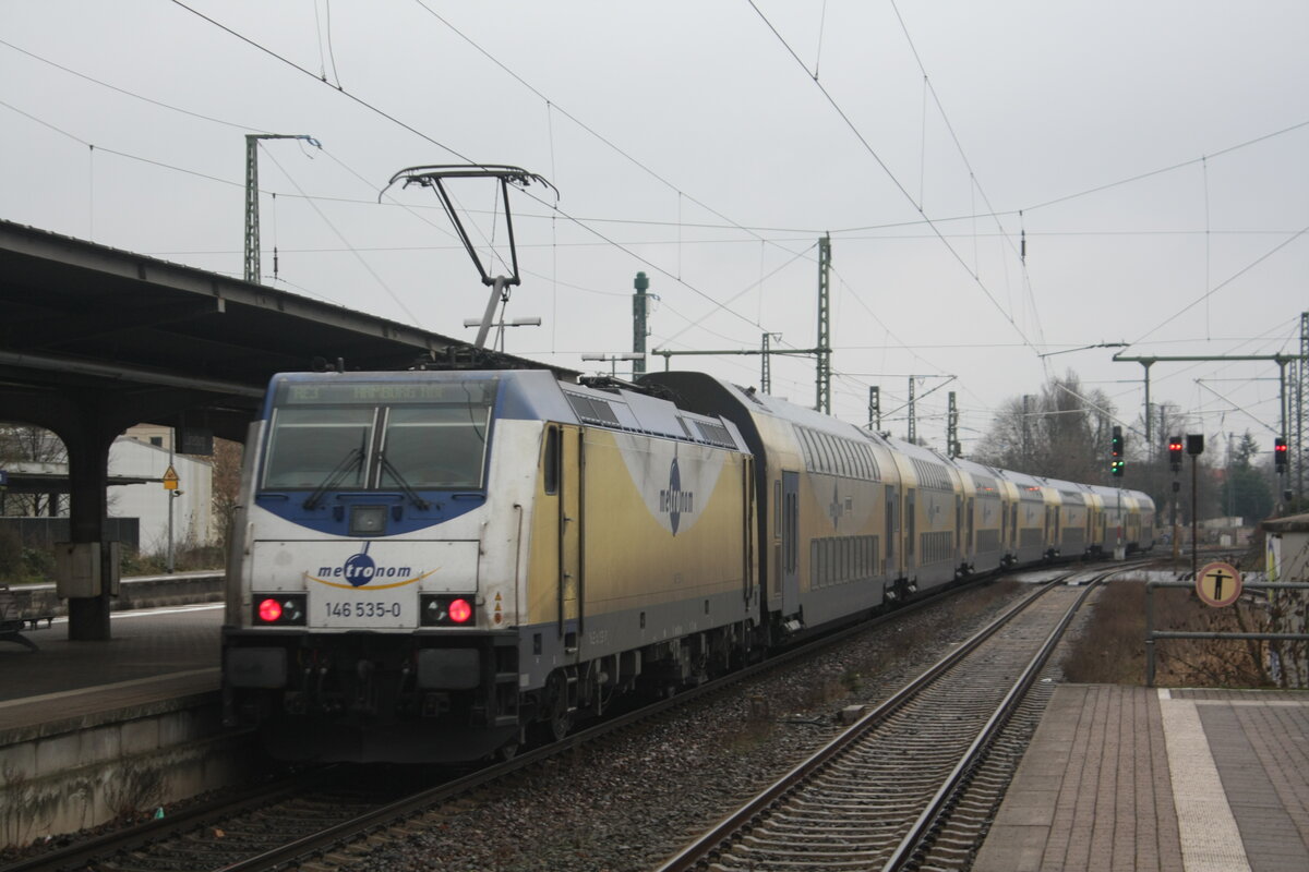 146 535 verlässt den Bahnhof Lüneburg in Richtung Hamburg Hbf am 4.1.22