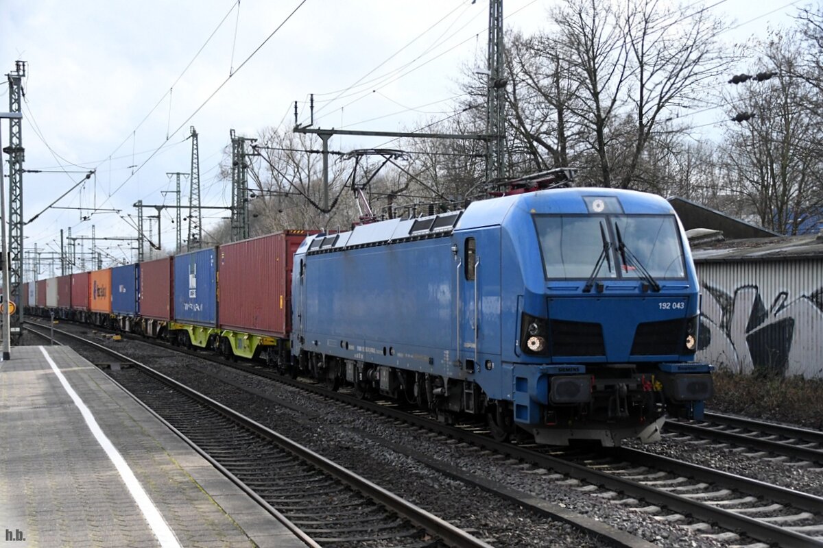 Seitenblick auf NorthRail/RTB cargo 192 016 in Landshut (Bay) am 16 September 2023. Das Bild wurde vom Bahnsteig gemacht.