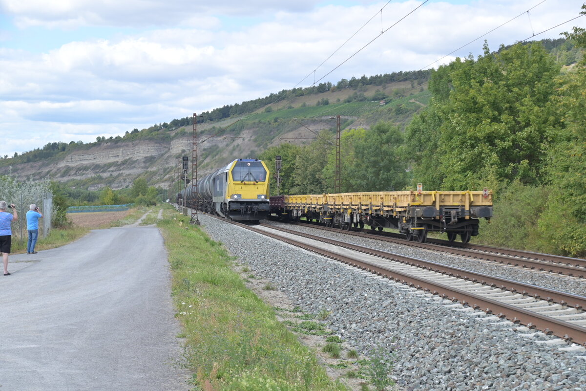 Zug Begegnung in Thüngersheim am 24.8.2025. Aus Retzbach-Zellingen nähert sich die 1264 001-9 mit reinem Kesselwagenzug wo hingegen gen Retzbach-Zellingen eine mir unbekannte