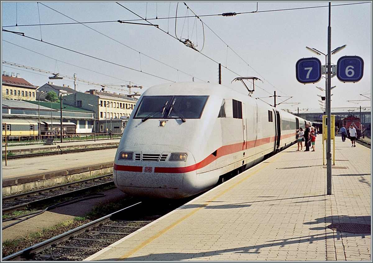 Während ein DB ICE I den Bahnhof Basel Bad. Bf in Richtung Deutschland verlässt, wartet die an RailAdenture vermietetet SBB Re 421 383 auf einen neuen Einsatz.