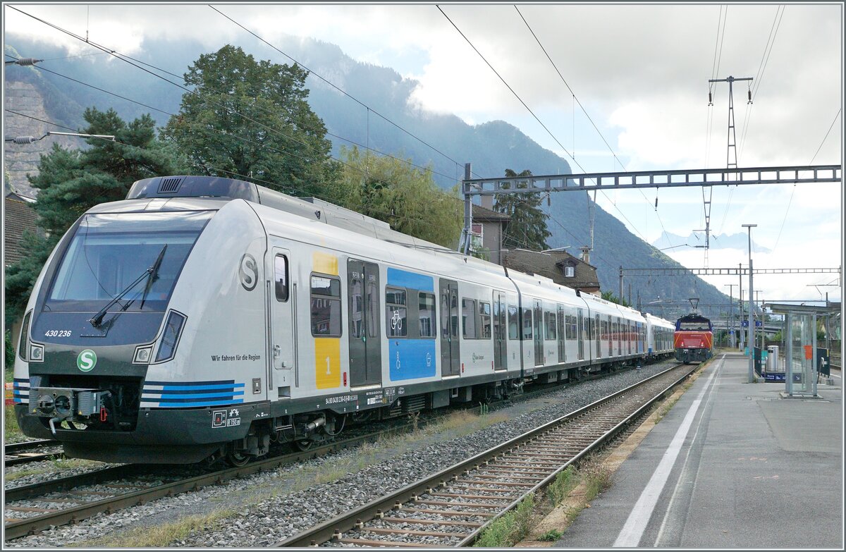 Eine Stuttgarter S-Bahn weit von ihrer Heimat entfernt in Villeneuve auf dem Weg ins Alstom Werk.