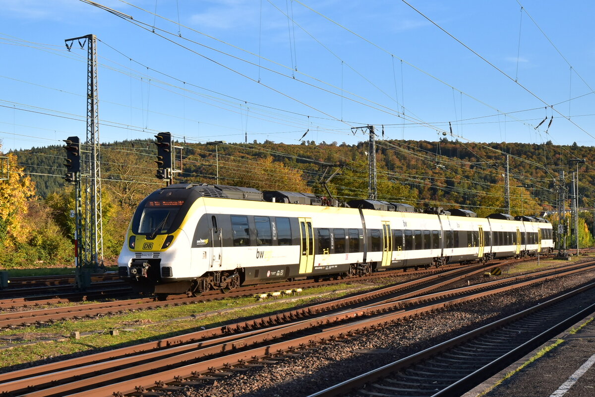 8442 823 als MEX18 von Osterburken nach Tübingen kurz nach der Ausfahrt in Bad Friedrichshall Hbf in Kochendorf vorm Salzbergwerk König Wilhelm II gen Neckar_sulm fahrend ist hier am Nachmittag des 17.11.2024 zu sehen. Andreas Strobel