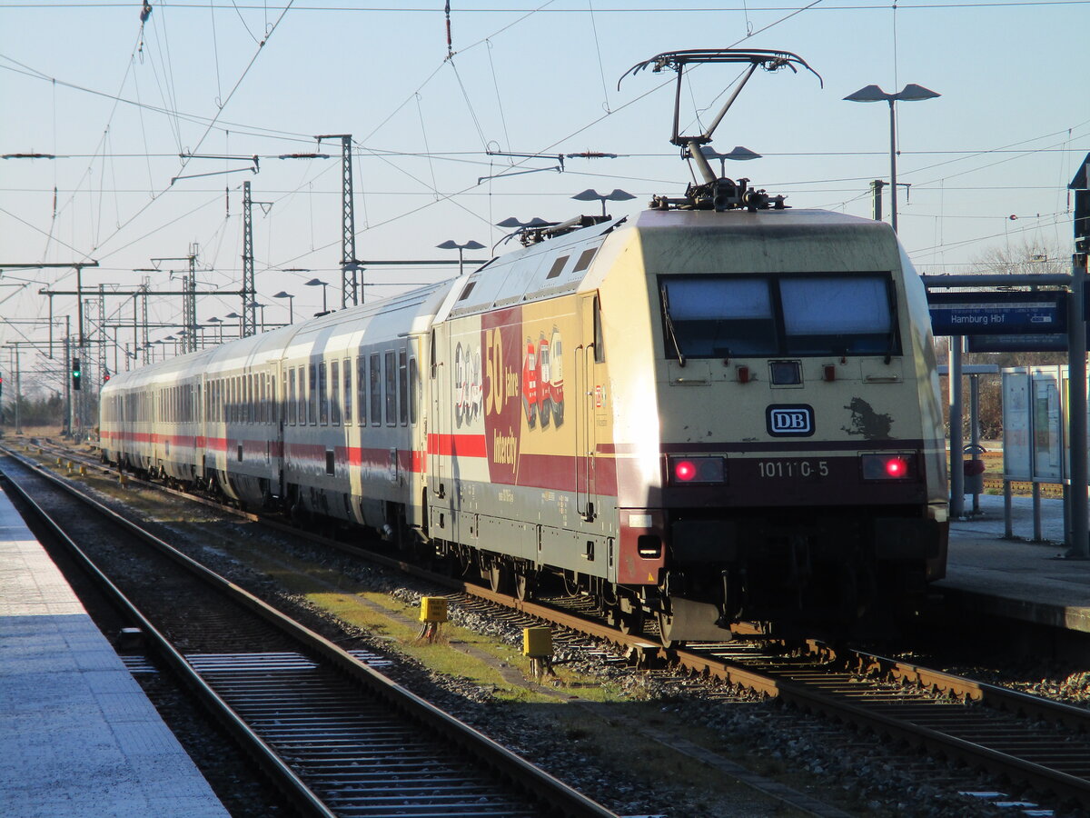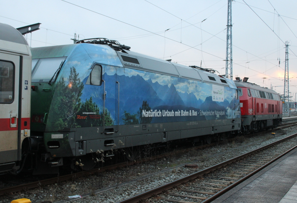 101 018 mit IC 2263(Binz-Hamburg)bei der Einfahrt im Rostocker Hbf.30.01.2026