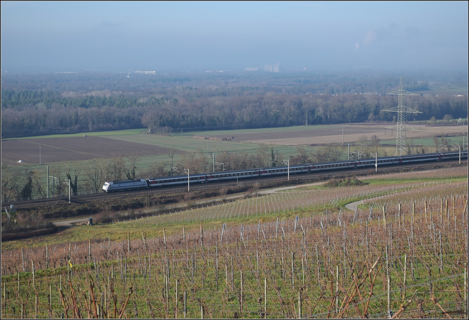101 110 mit dem allerletzten EC nach Basel, dem EC 9. Ab dem Fahrplanwechsel fährt kein Eurocityzug mehr in die Schweiz. Schliengen, Dezember 2025. Olli