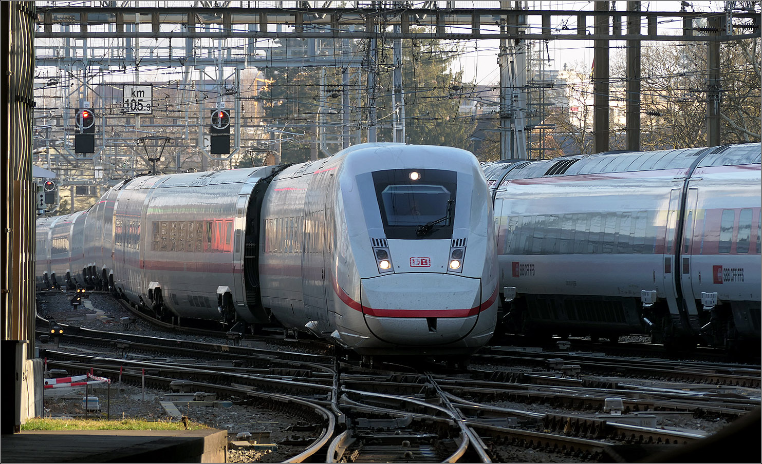 ICE Zürich – Stuttgart fährt nach kurzer Wendezeit auf die Schwarzwaldbahn bis Hattingen. Februar 2010.