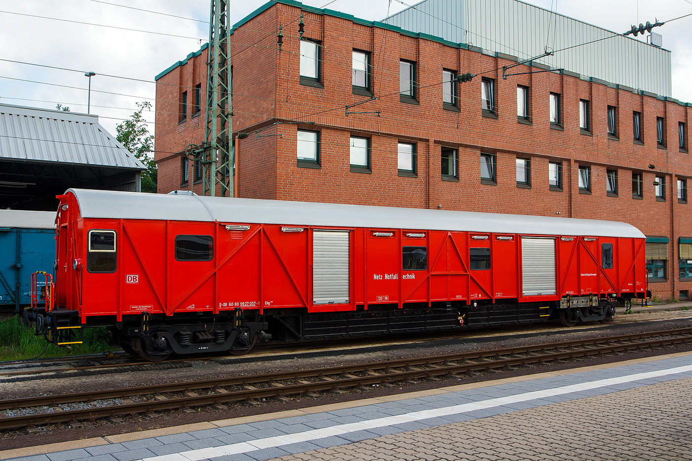 Der Hilfszug ist eine fahrende Werkstatt und bietet ein hervorragendes Raumangebot für Gerät und Mannschaft. Die Wechselaufbauten können im Falle einer Revision des Trägerwagens einfach auf ein anderes Trägerfahrzeug umgesetzt werden. Dadurch spart man das mühsame und vor allem zeitintensive Umladen des gesamten Equipments von einem zum anderen Wagen. Dieses neuartige System aus Wechselaufbau und Trägerwagen heißt in der Fachsprache AOC/MTF (Anwendungs Orientierter Container kombiniert mit einem Multifunktionalen – oder auch modularem TrägerFahrzeug). Die Wechselbehälter haben Falttüren, einen geraden Boden und zwischen diesem und der Tiefladefläche sind zusätzliche Staukästen eingebaut worden. Diese bieten z.B. der Aufgleisbrücke einen idealen gleisnahen Platz. Die Toilettenanlage wurde mit einer umweltfreundlichen Verbrennungstoilette realisiert.
