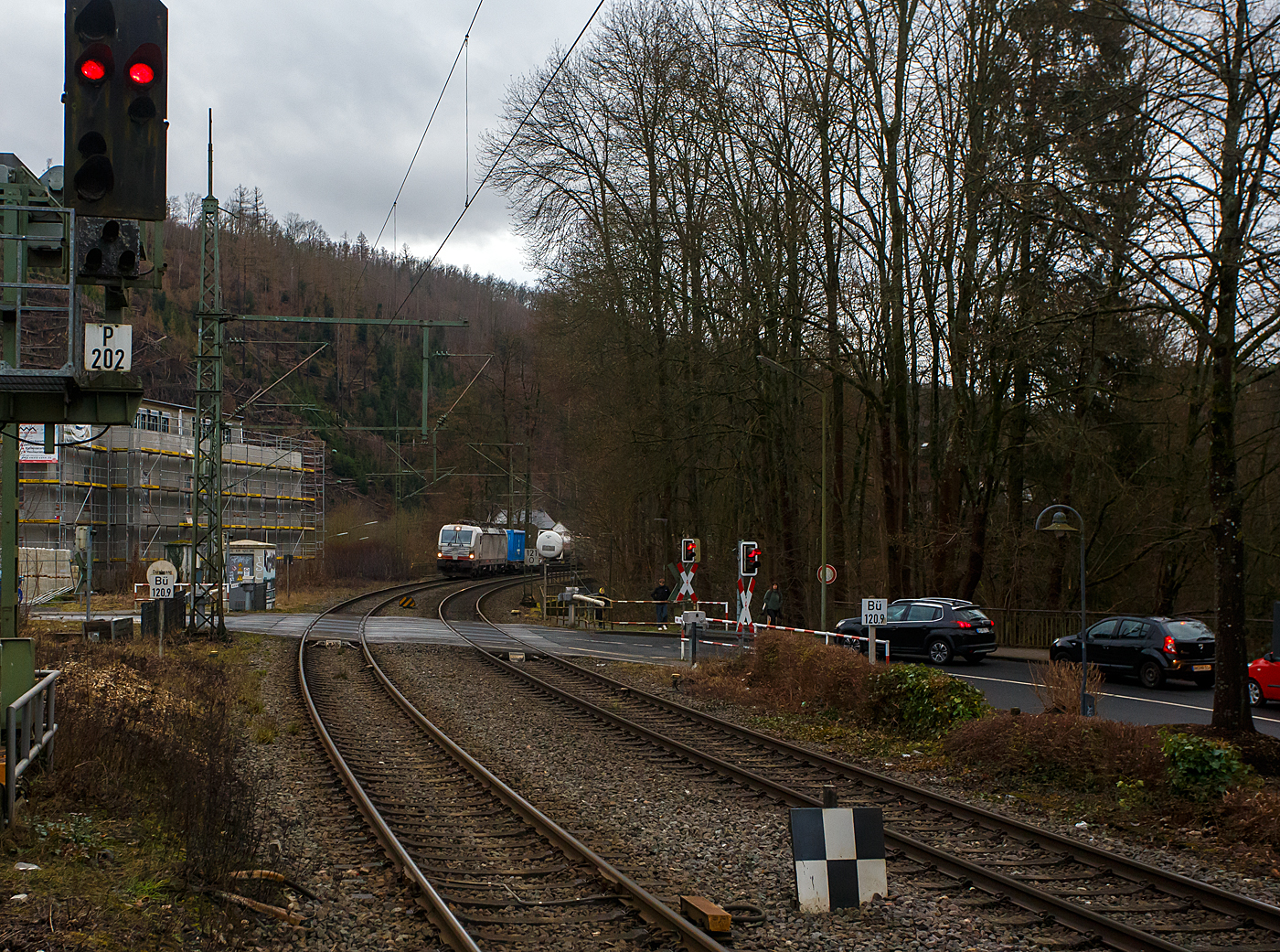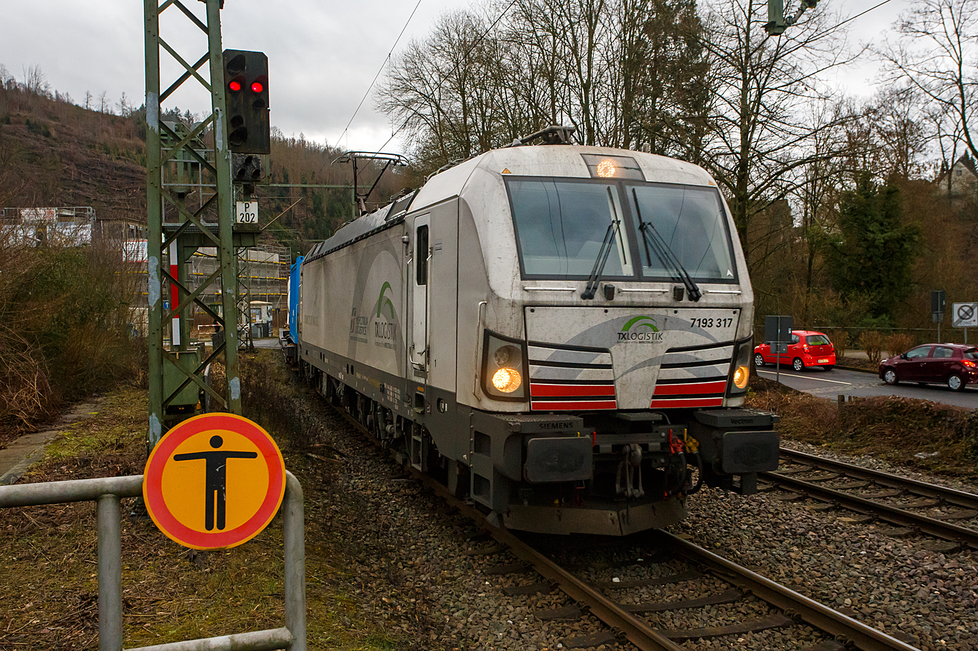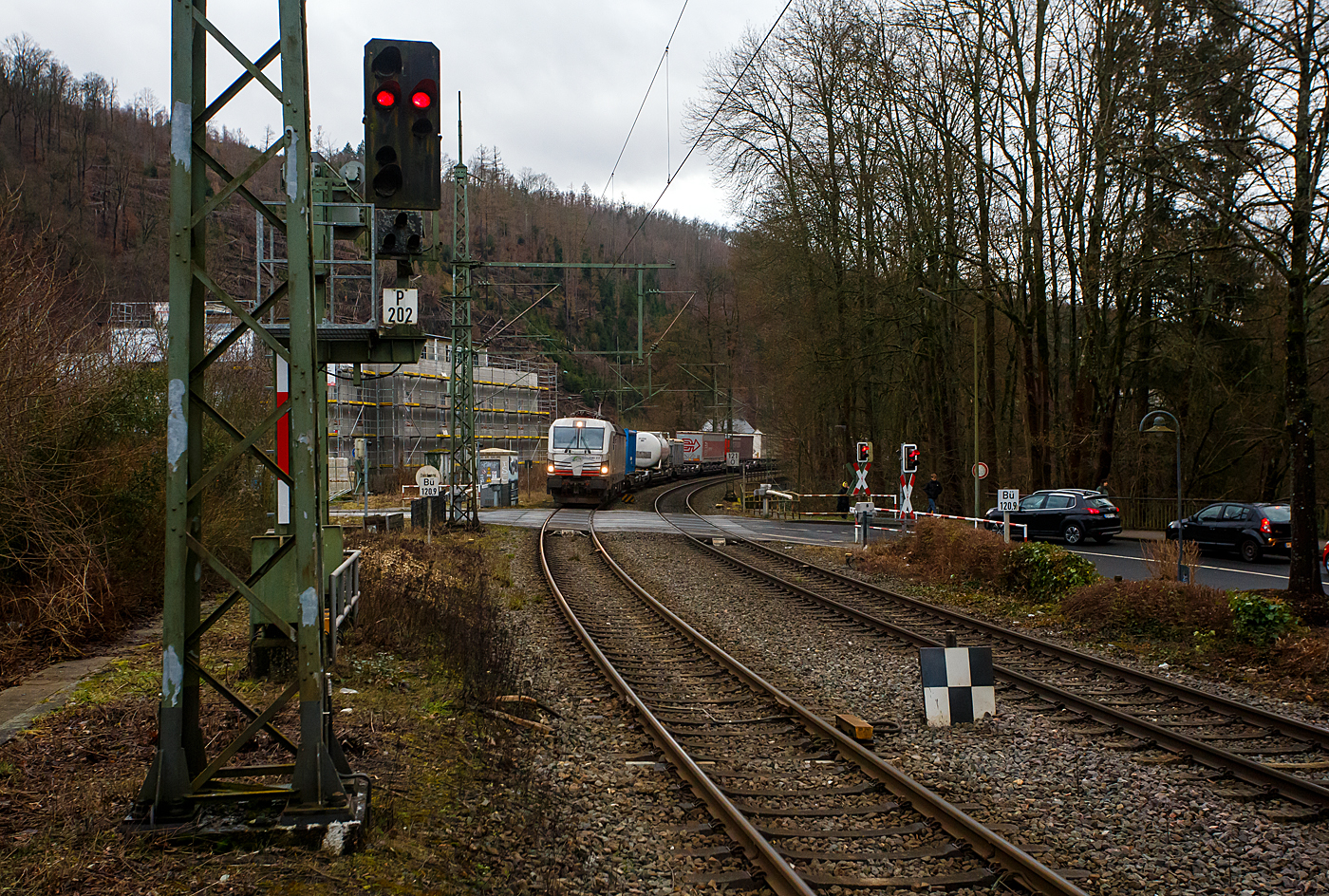 Die bunte und schöne an die TX Logistik AG vermietete Siemens Vectron MS X 4 E – 640 / 193 640-0 “Connected by Rail” (91 80 6193 640-0 D-DISPO) der MRCE Dispolok GmbH (München) fährt am 28.03.2023, mit einem KLV-Zug, durch Scheuerfeld (Sieg) Richtung Köln.