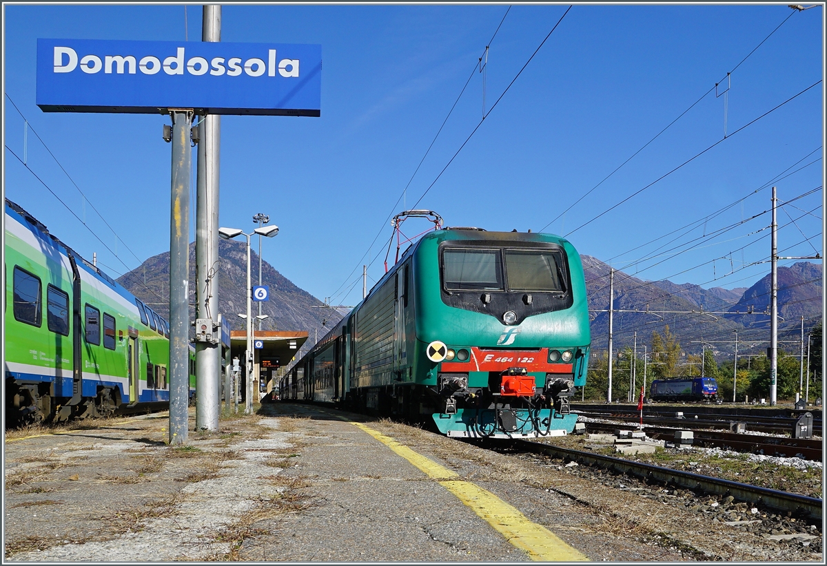 Der Klassiker aus Domodossola: Ein Regionalzug nach Milano, nun wieder "erst-klassig"; Trenord E 464 380 mit ihrem RE nach Milano (ab 8:51).