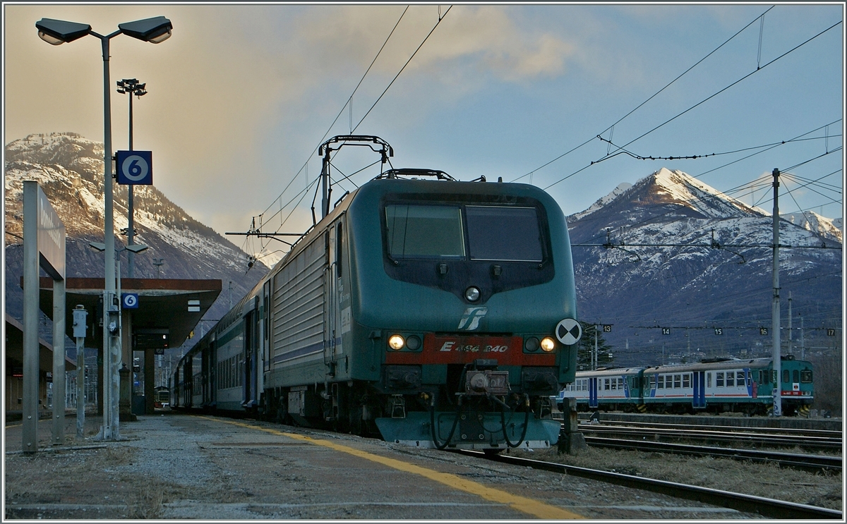Die FS Trenitalia E 464 213 (und am anderen Zugsende eine weiterer E 464) stellen in Palermo den IC nach Roma Termini bereit.
