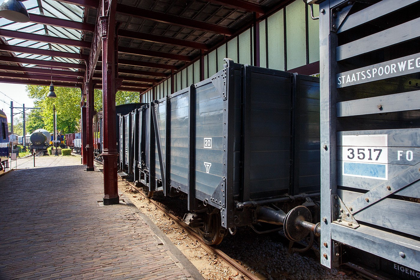 Der zweiachsige Kesselwagen (für Ladegut Teeröl / Kreosot) SM - Staatsmijnen in Limburg (Staatliche Bergwerke) NS 515615 [P], ex SM 10402, am 29 April 2025 im Het Spoorwegmuseum (bis 2005 NSM - Nederlands Spoorwegmuseum / Niederländischen Eisenbahnmuseum) in Utrecht im Bahnhof Maliebaan.