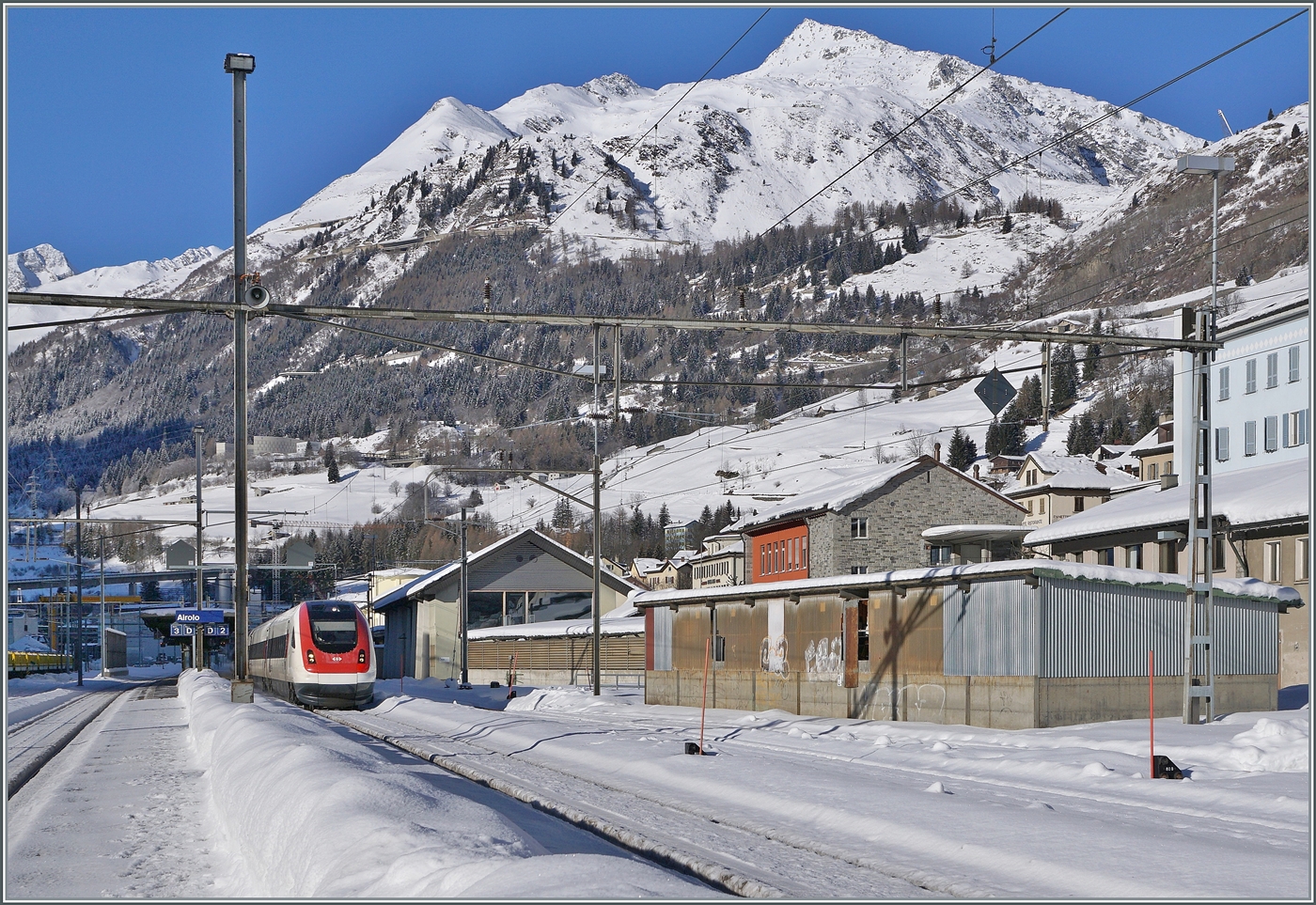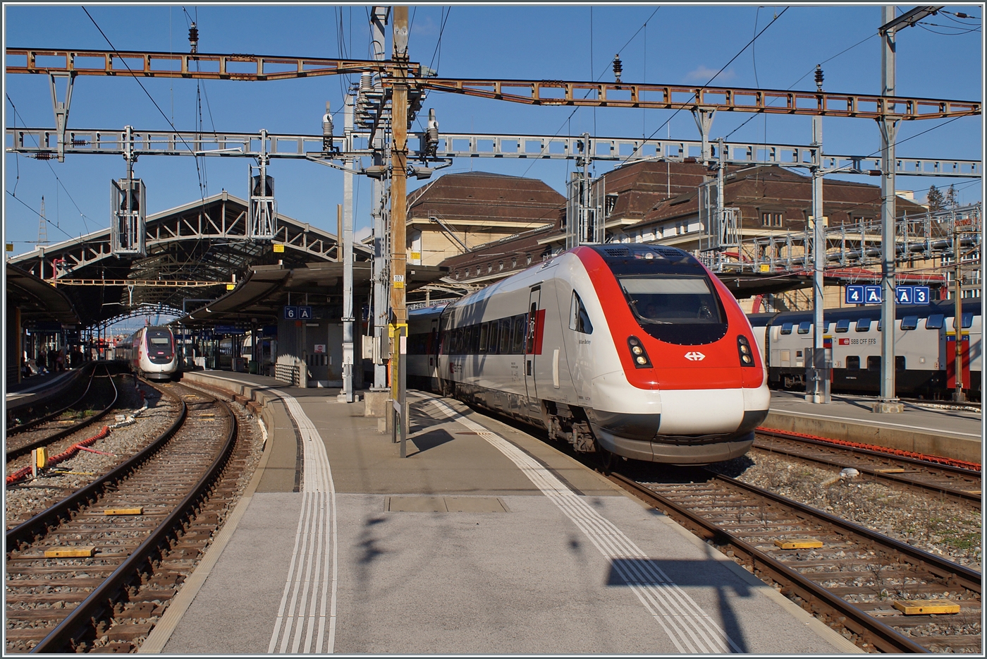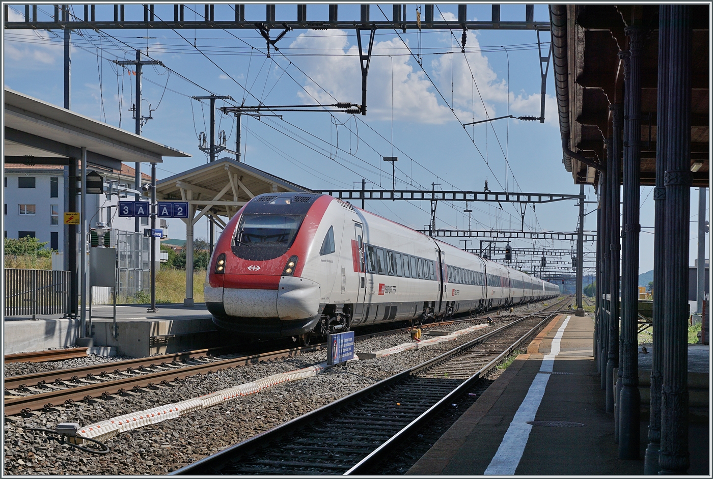 Ein SBB ICN RABe 500 bei Ligerz auf dem letzten Einspurabschnitt der Strecke Biel/Bienne - Lausanne auf der Fahrt nach Genève Aéroport.