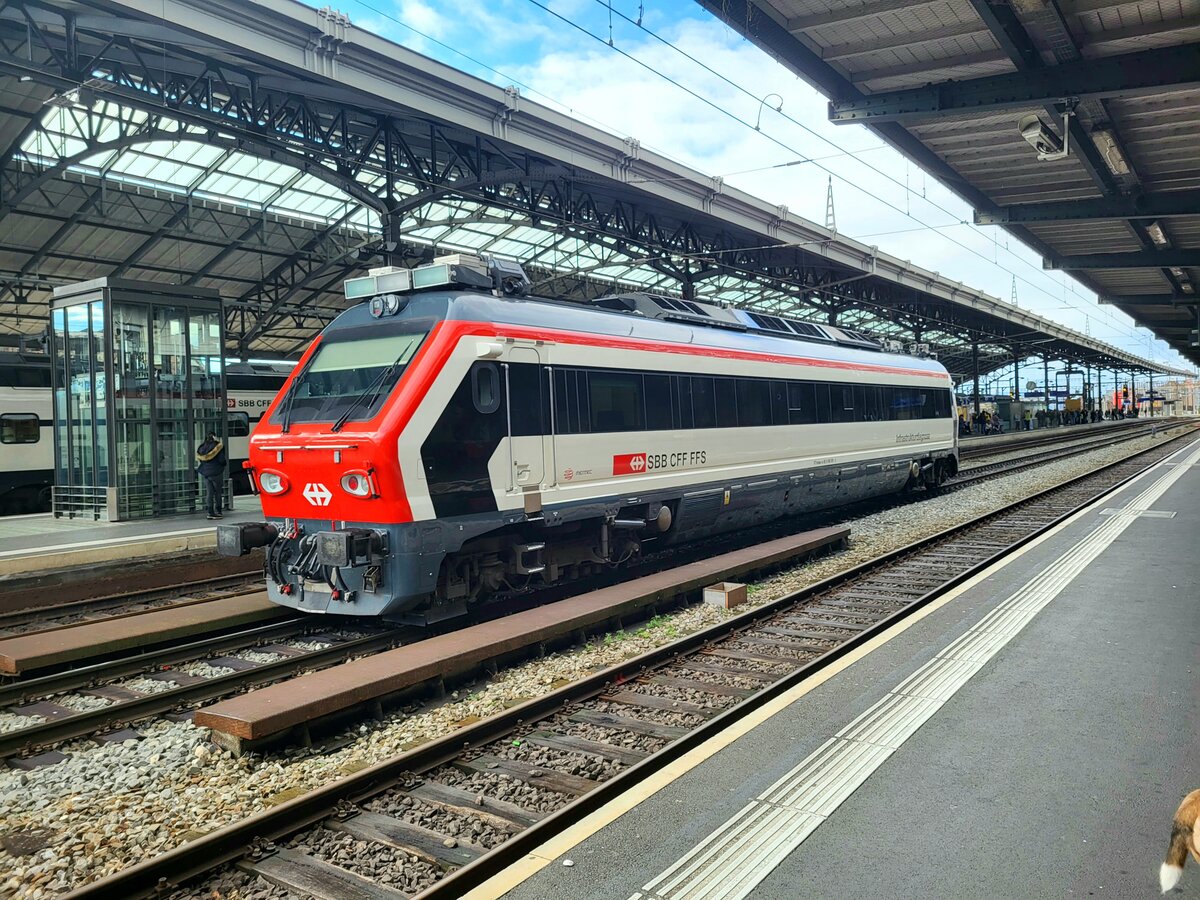 Die SBB FFS Xrotm 491 111 steht etwas verschneit im Bahnhof von Airolo.