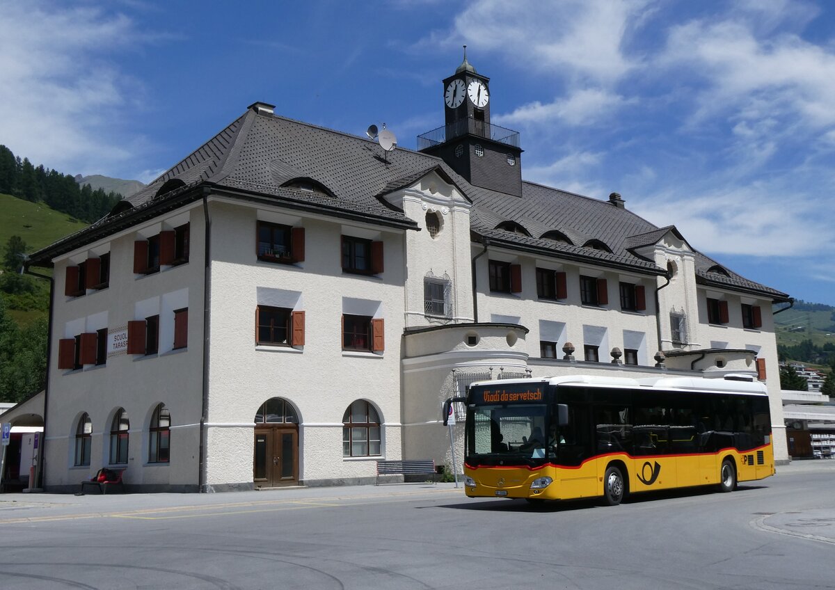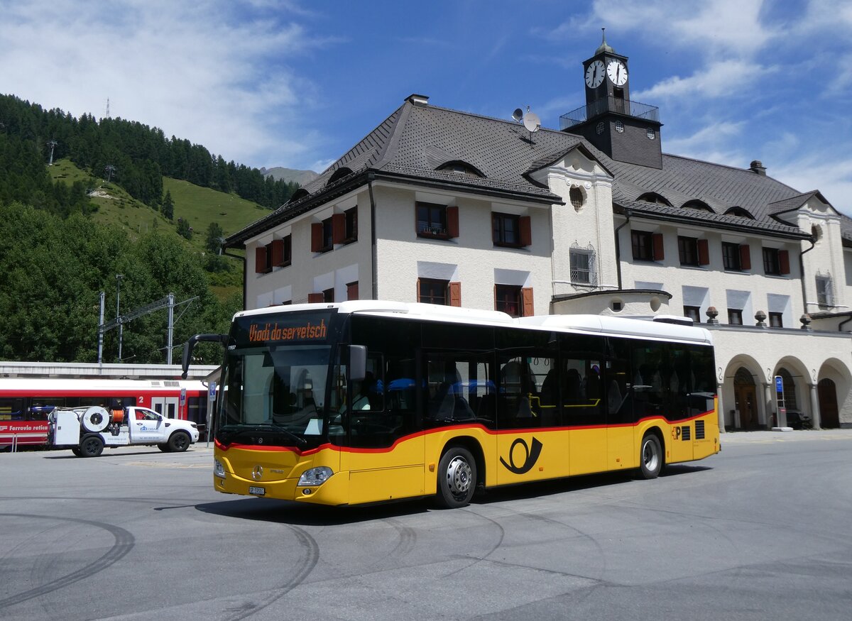 (266'234) - PostAuto Graubünden - GR 159'233/PID 5697 - Mercedes am 27. August 2024 beim Bahnhof Scuol-Tarasp