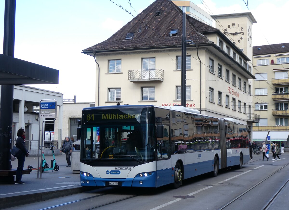 (273'168) - VBZ Zürich - Nr. 558/ZH 730'558 - Neoplan am 24. März 2025 beim Bahnhof Zürich Oerlikon