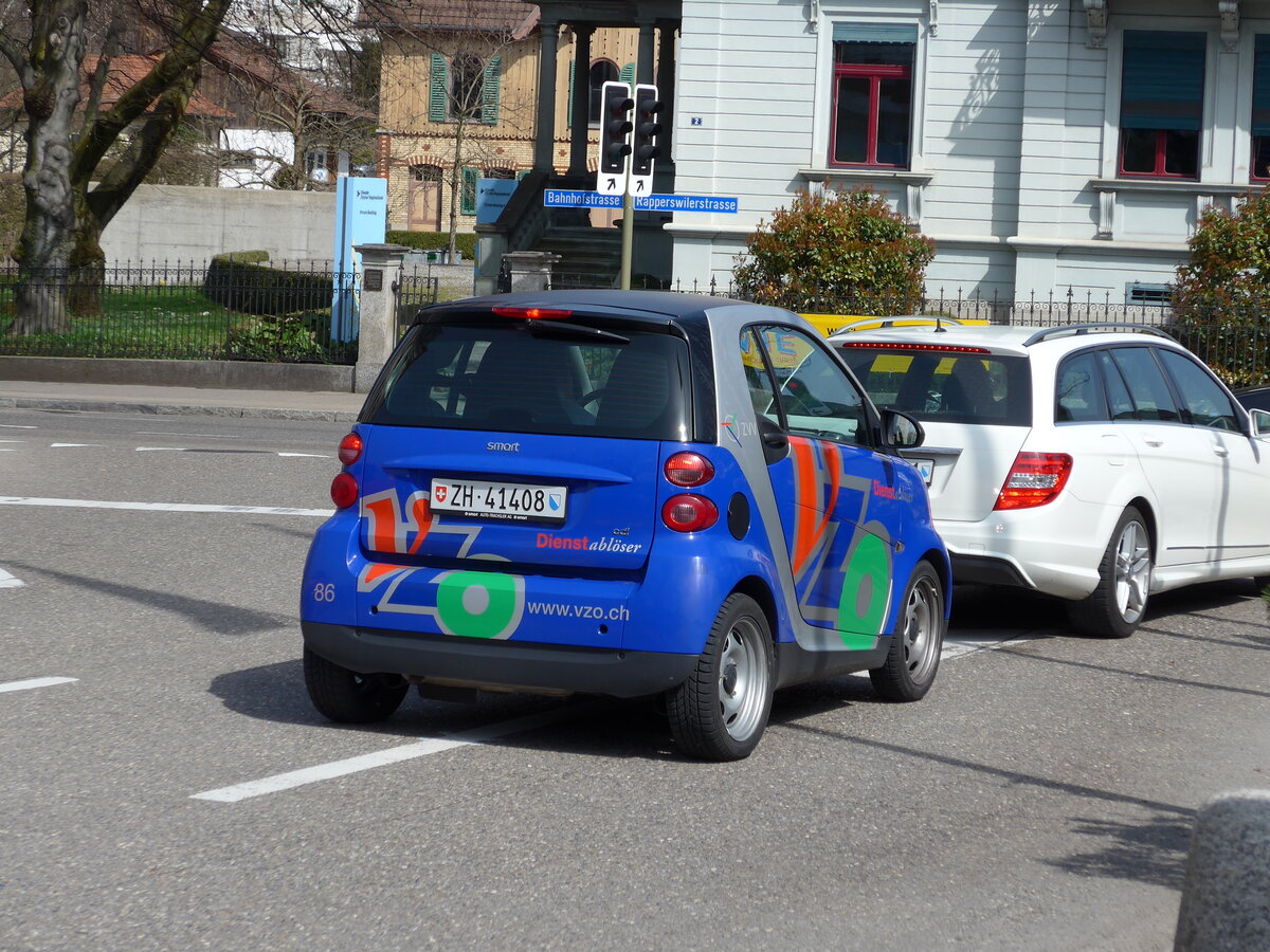 (156'265) - VZO Grüningen - Nr. 79/ZH 548'479 - Smart am 28. Oktober 2014 beim Bahnhof Uster