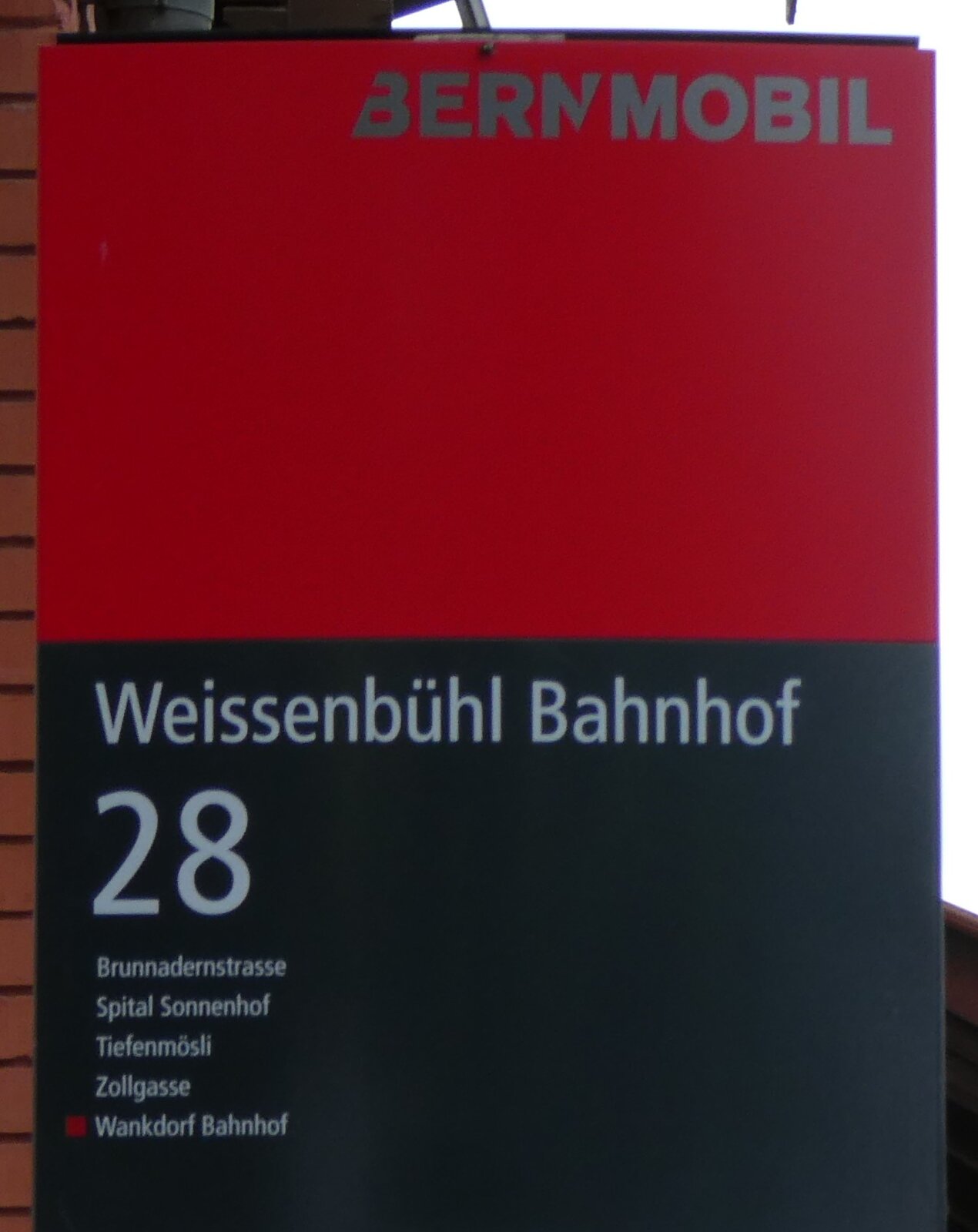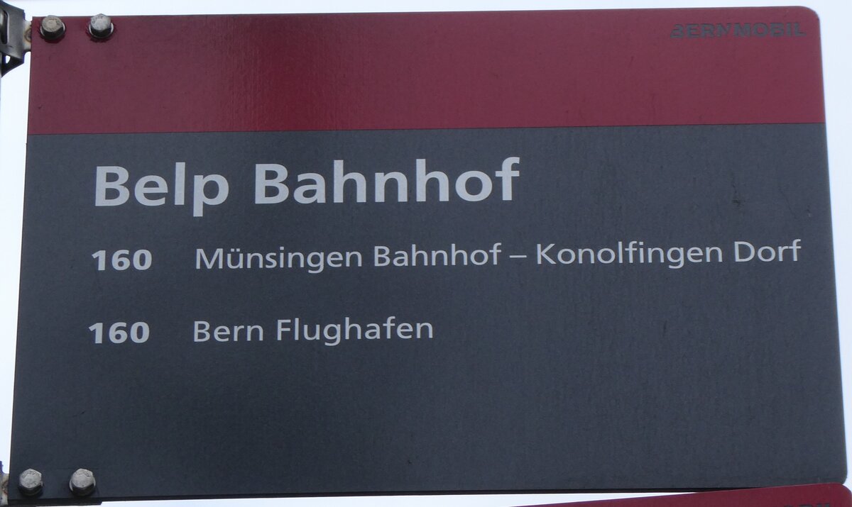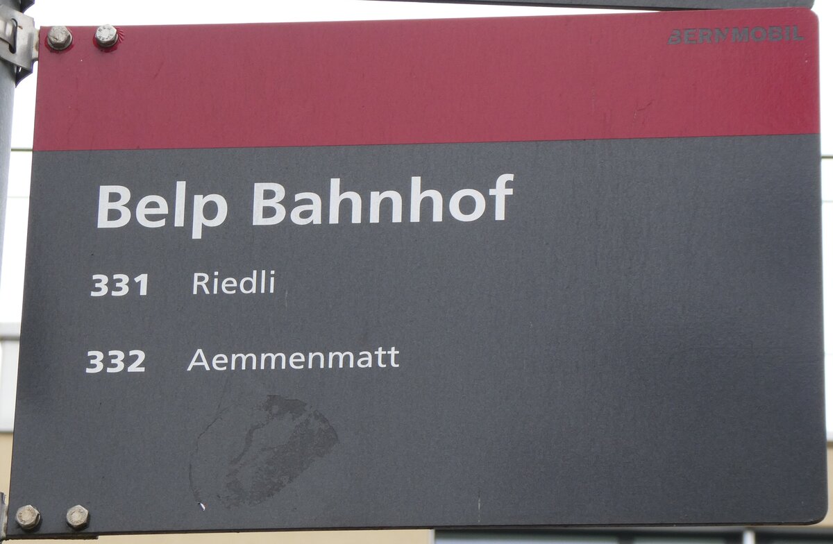 (272'526) - BERNMOBIL-Haltestellenschild - Belp, Aemmenmatt - am 1. März 2025