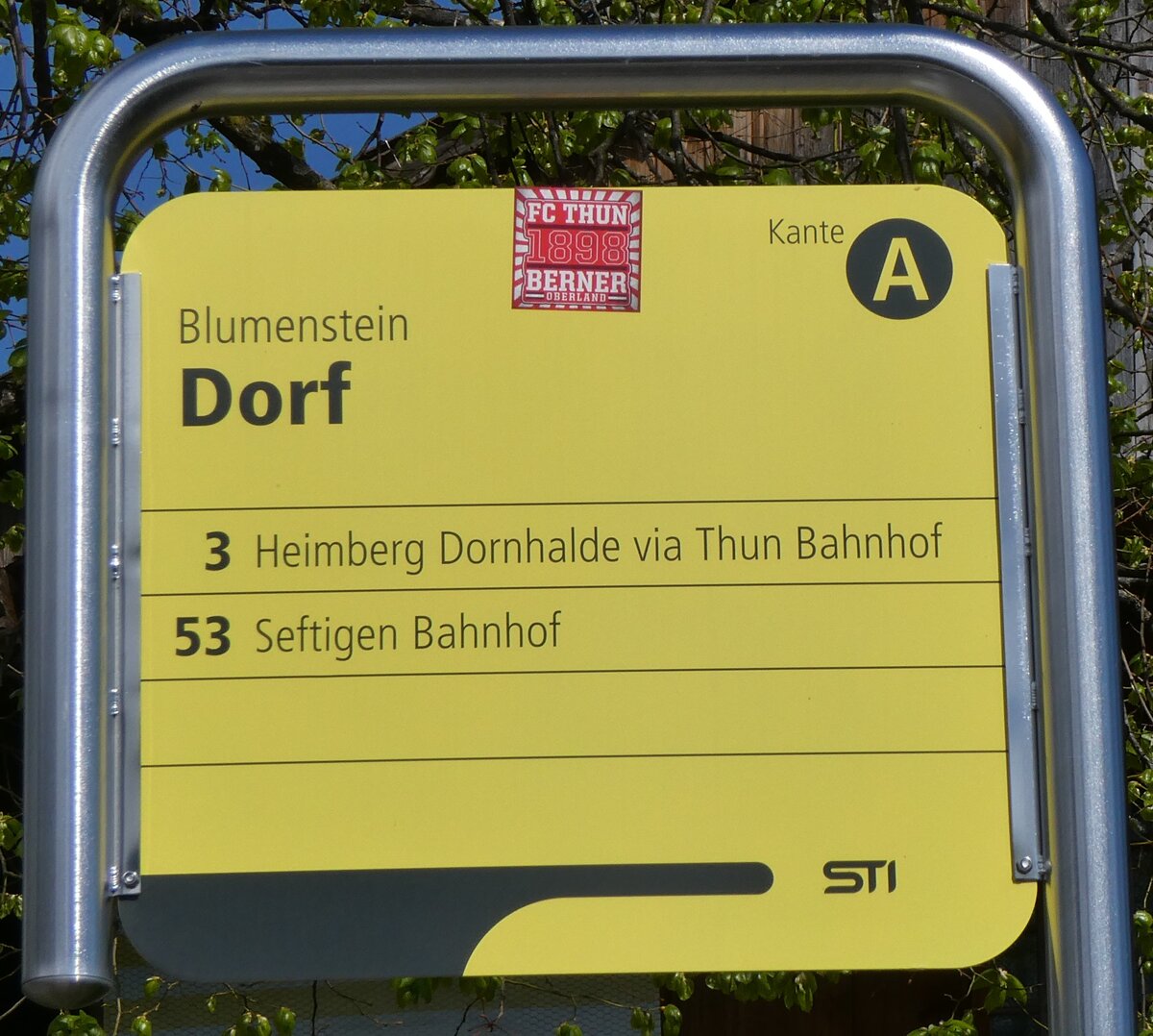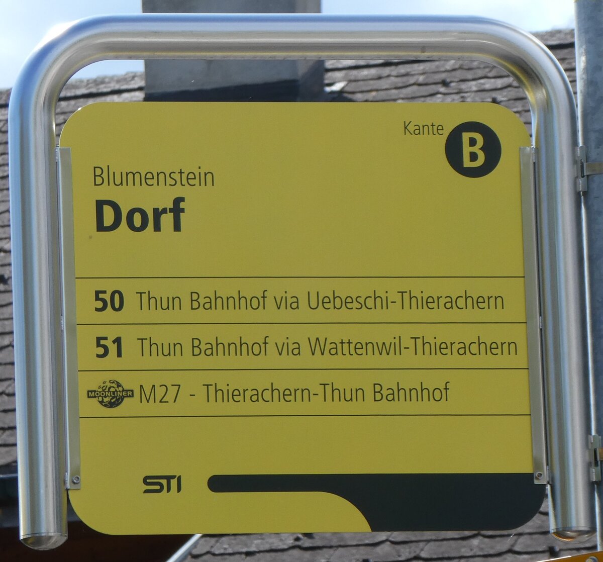 (266'949) - STI-Haltestellenschild - Uebeschi, Secki - am 13. September 2024 in Blumenstein, Tannenbühl