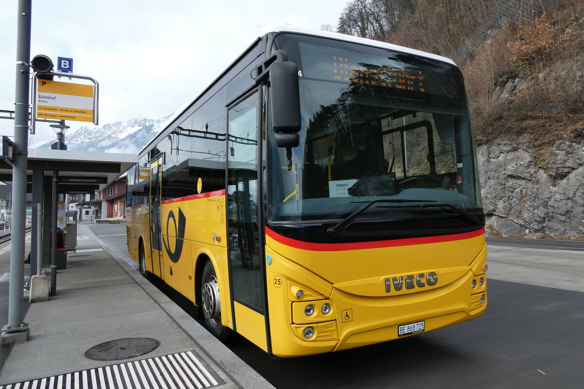(284'354) - Flück, Brienz - Nr. 25/BE 868'725/PID 11'594 - Iveco am 26. Januar 2026 beim Bahnhof Brienz