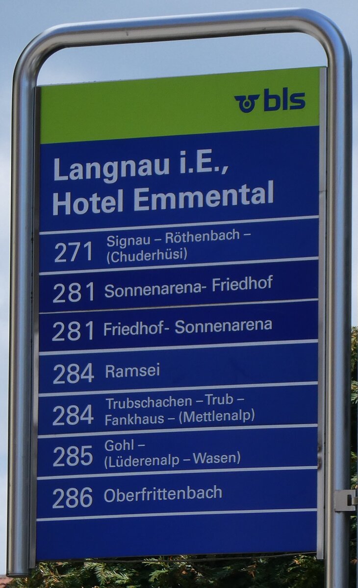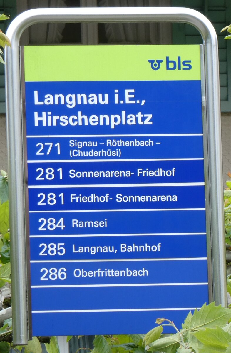 (265'902) - THP/bls-Haltestellenschilder - Langnau i.E., Bahnhof - am 18. August 2024