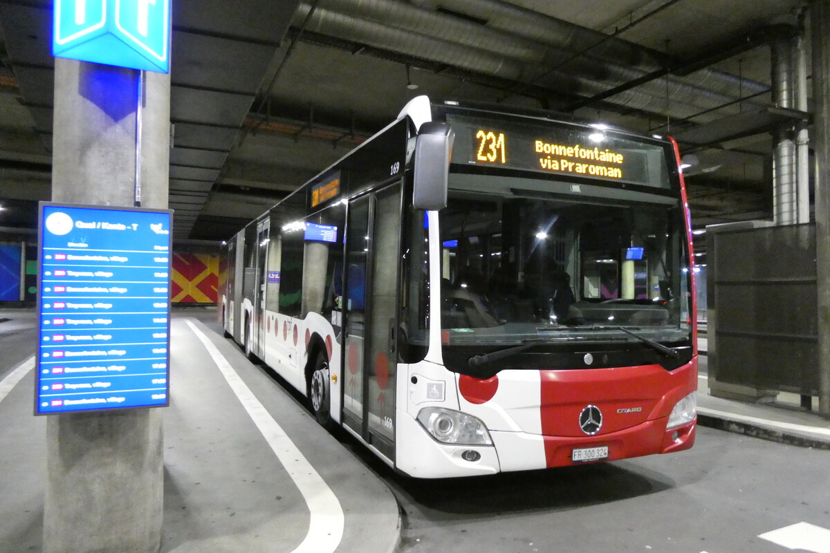 (271'623) - TPF Fribourg - Nr. 576/FR 301'556 - Mercedes am 1. Februar 2025 beim Bahnhof Fribourg