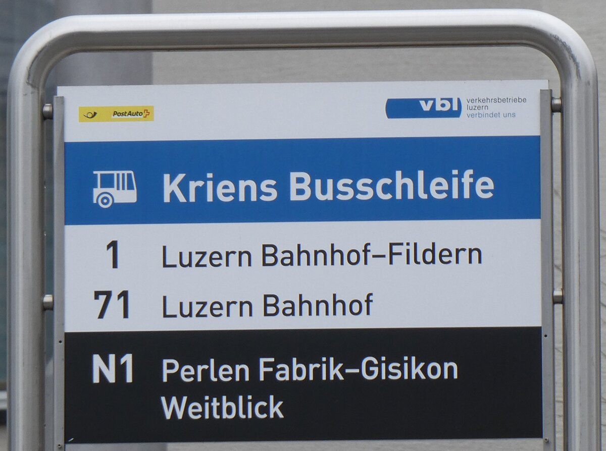 (272'264) - vbl/PostAuto-Haltestellenschild - Kriens, Busschleife - am 20. Februar 2025