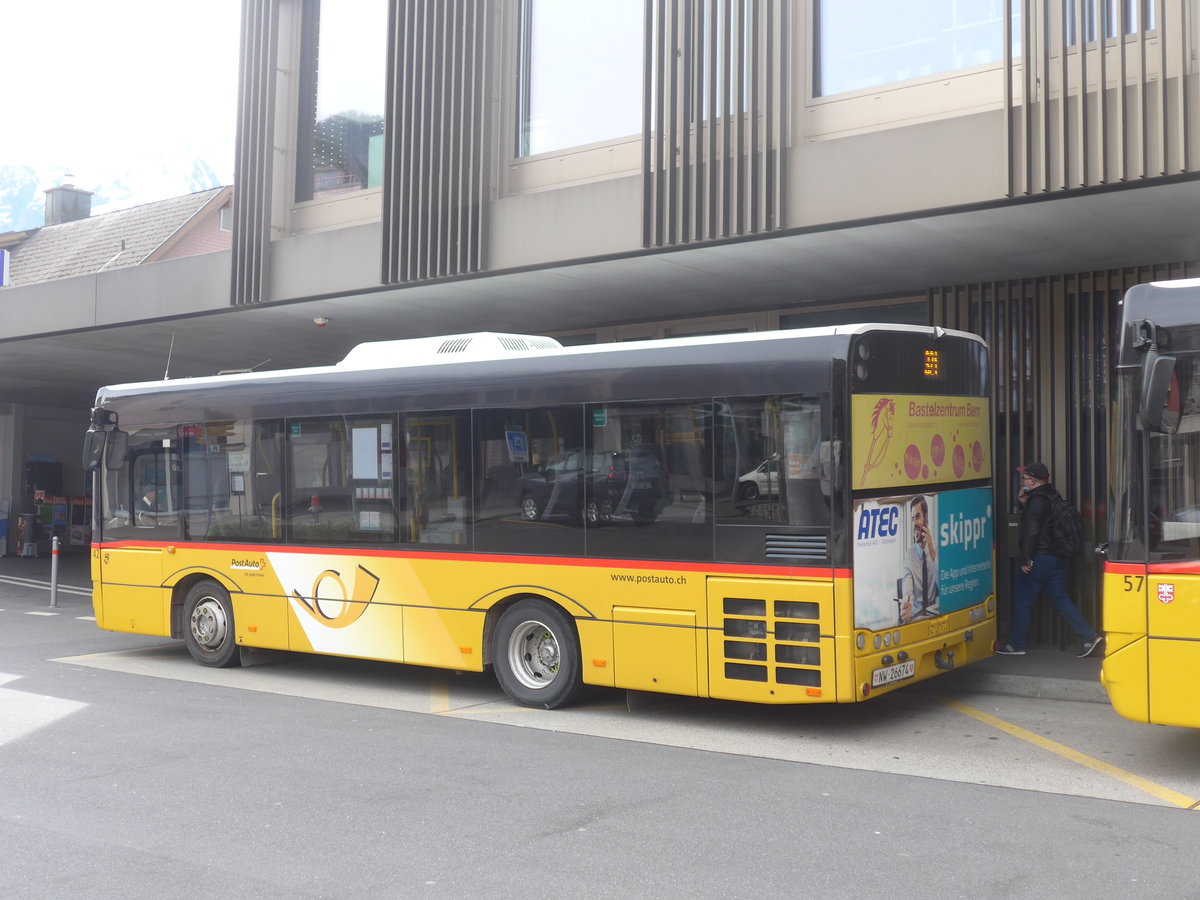 (186'828) - PostAuto-Haltestellenschild - Stansstad, Bahnhof - am 9. Dezember 2017