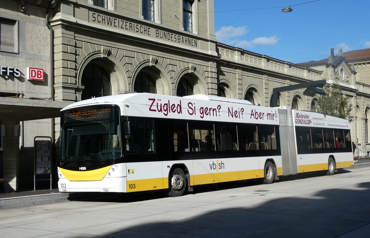 (281'911) - VBSH Schaffhausen - Nr. 103 - Hess/Hess Gelenktrolleybus am 30. Oktober 2025 beim Bahnhof Schaffhausen