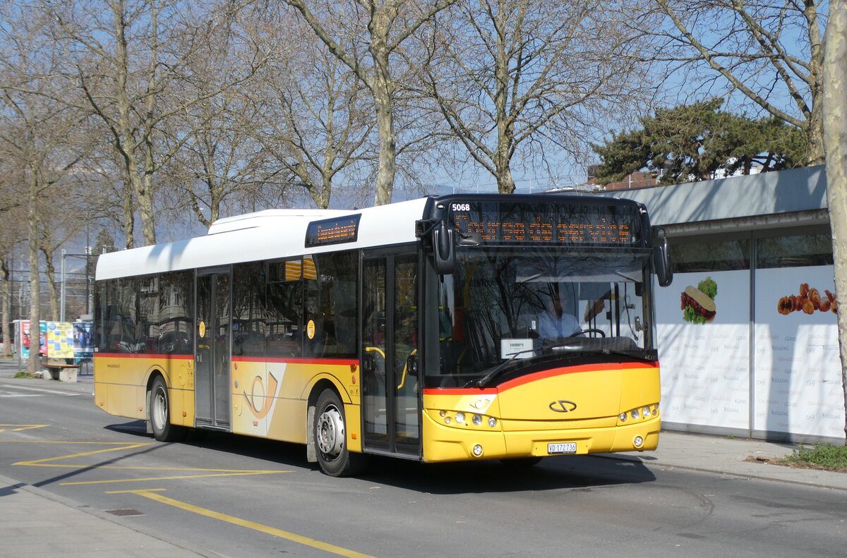 (246'617) - Rattin, Schlatt - TG 228'552/PID 10'599 - Solaris (ex PLA Vaduz/FL Nr. 3; ex PostAuto Ostschweiz SG 267'069; ex PostAuto Ostschweiz TG 158'089; ex Express-Auto, Kreuzlingen) am 25. Februar 2023 beim Bahnhof Frauenfeld