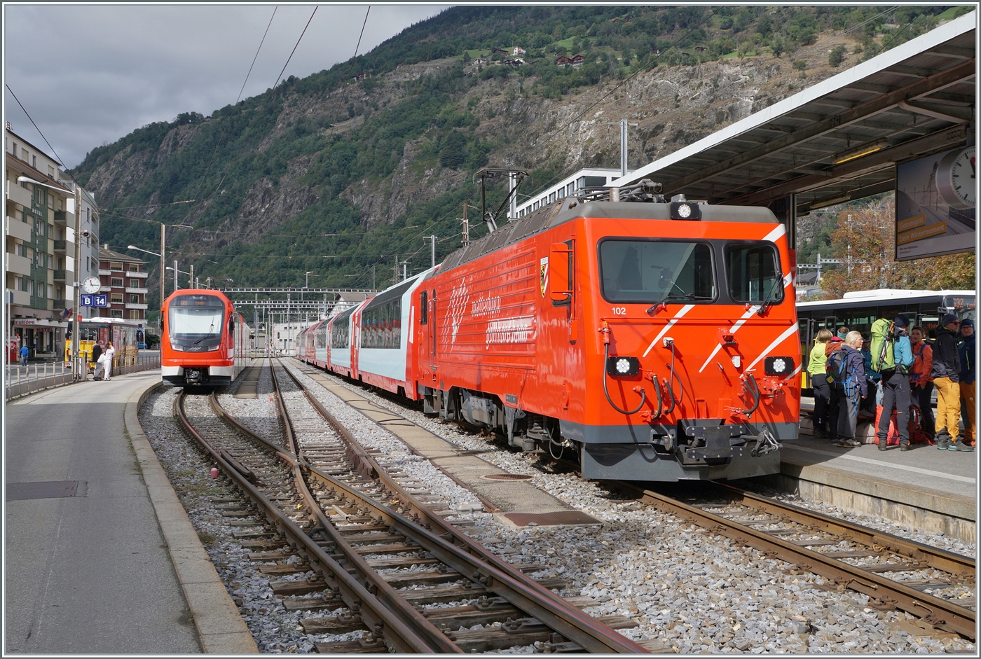 Leider war ich schon zu müde um die Glacier Express Züge in der (noch zu suchenden,) passenden Landschaft zwischen Stalden und St Niklaus abzulichten.
