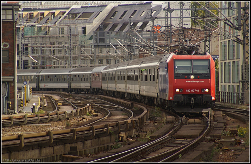 SBB cargo Re 482 027-0 bringt mit dem DPE 36581 "Sonderzug Süd" reichlich Leute zur Anti-Atom-Demo nach Berlin Hauptbahnhof (gesehen Berlin Friedrichstraße 18.09.2010)