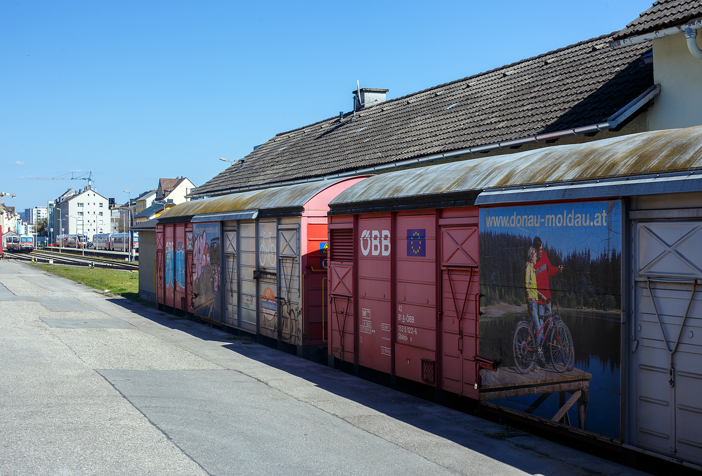 Slowakischer zweiachsiger Bahnpostwagen SP 44 56 153 8 001-8 [P] der Gattung Gbkkqs der Slovenská Pošta (Slowakische Post AG), abgestellt am 20.04.2023 im Bahnhof Bečov nad Teplou (Petschau).