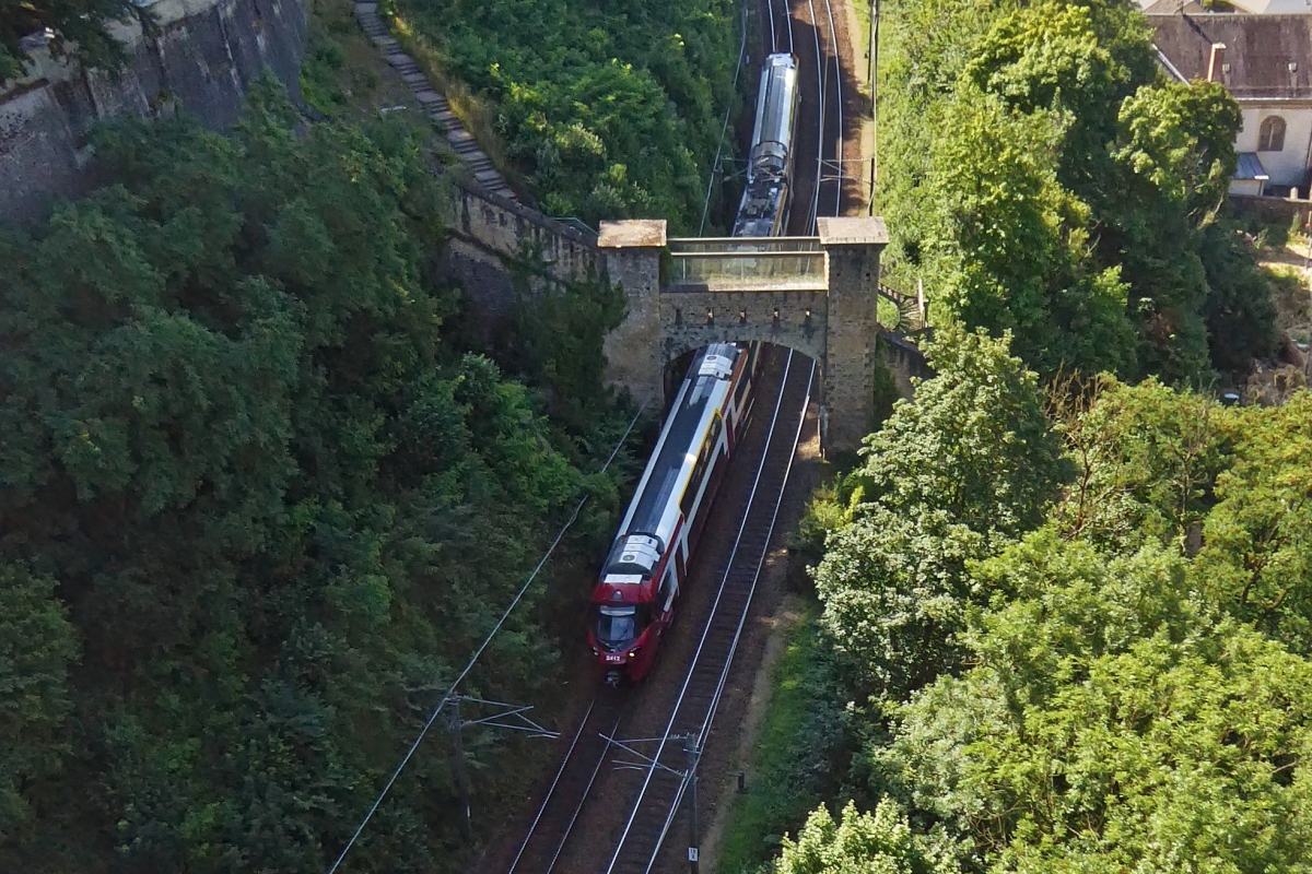 . Während die Weinreben noch kahl sind, fährt ein CFL KISS an der Mosel entlang zwischen Wasserbilligerbrück und Igel. 14.01.2018 (Jeanny)
