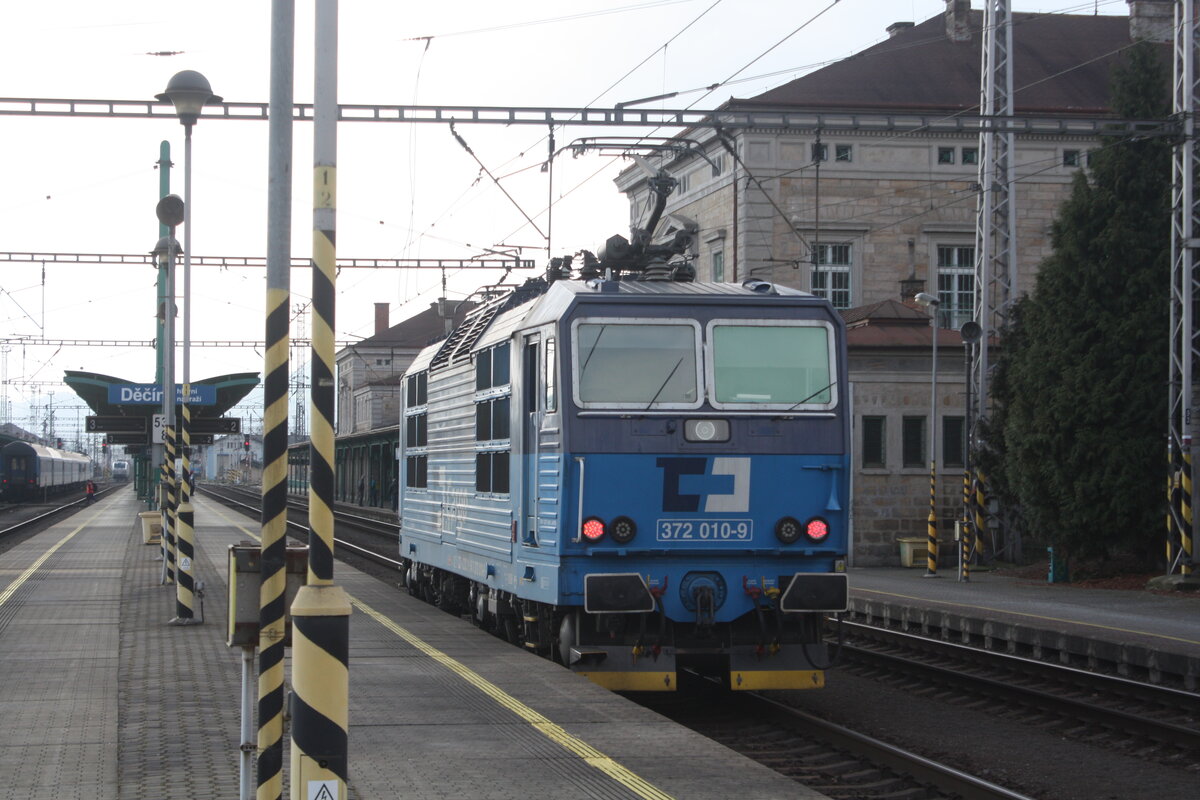372 010 von CD Cargo bei der Einfahrt in den Bahnhof Decin hl.n. 13.3.24