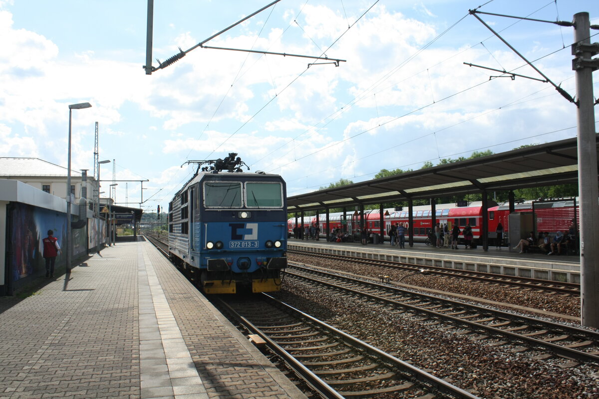 372 013 verlässt den Bahnhof Pirna in Richtung Tschechien am 6.6.22