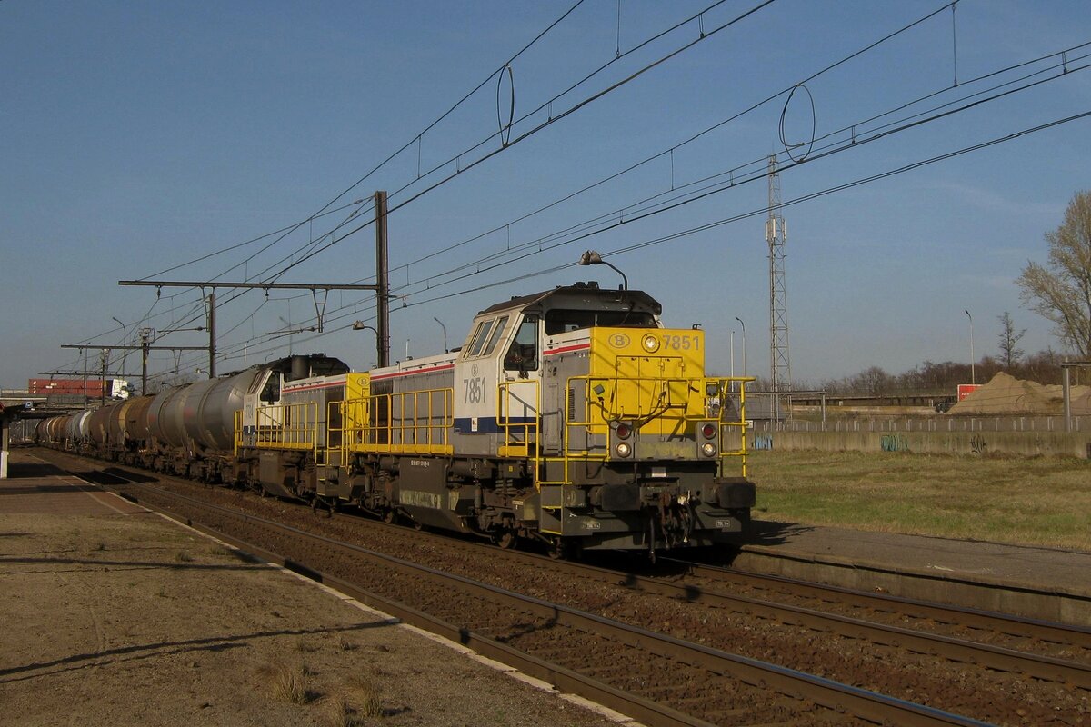 Kesselwagenzug mit 7751 dönnert durch Antwerpen-Luchtbal am 10 Juni 2006.