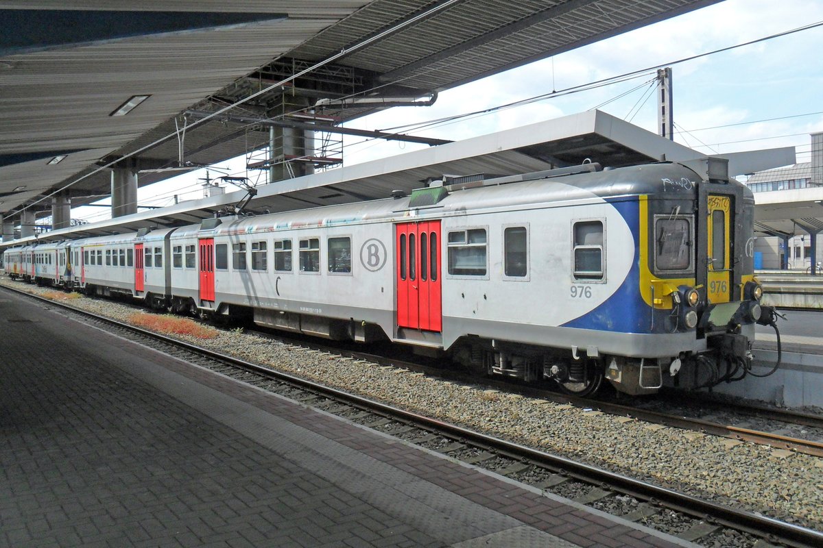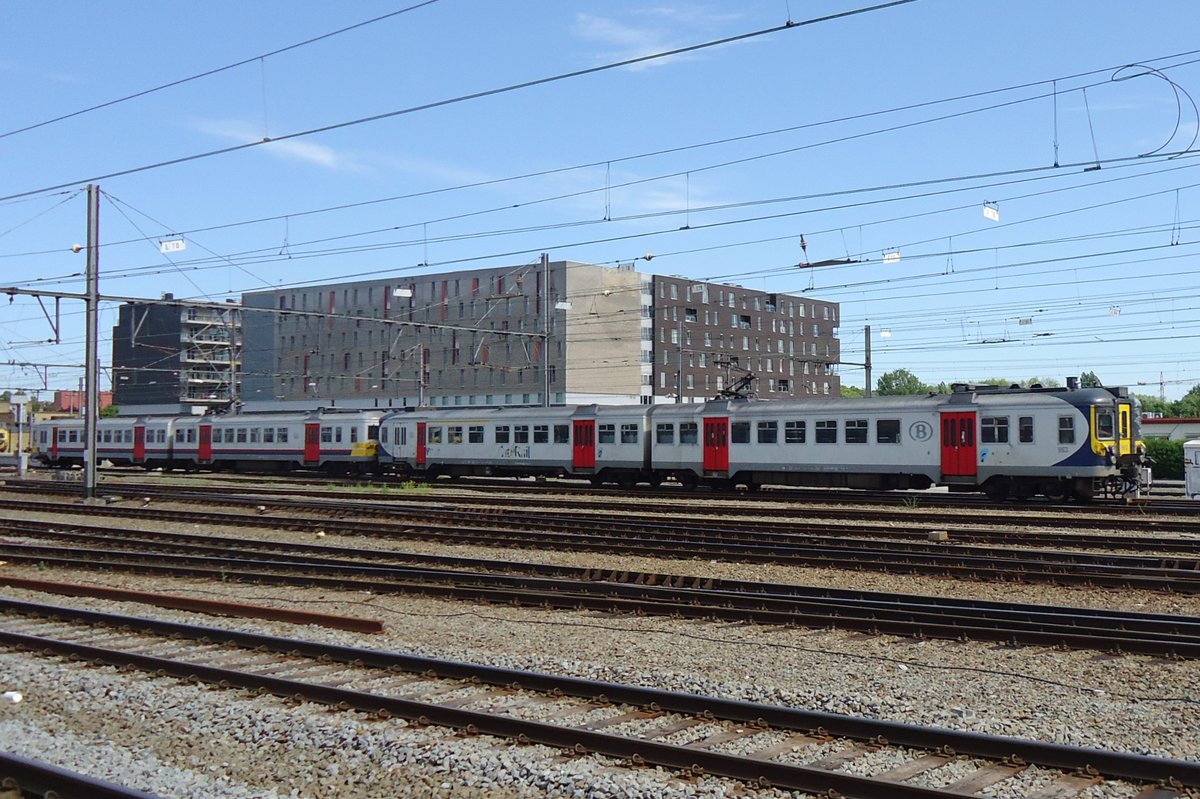 . AM City Rail 988 erreicht mit einer zweiten Automotrice am 23.06.2010 die Haltestelle Antwerpen-Luchtbal. (Jeanny)